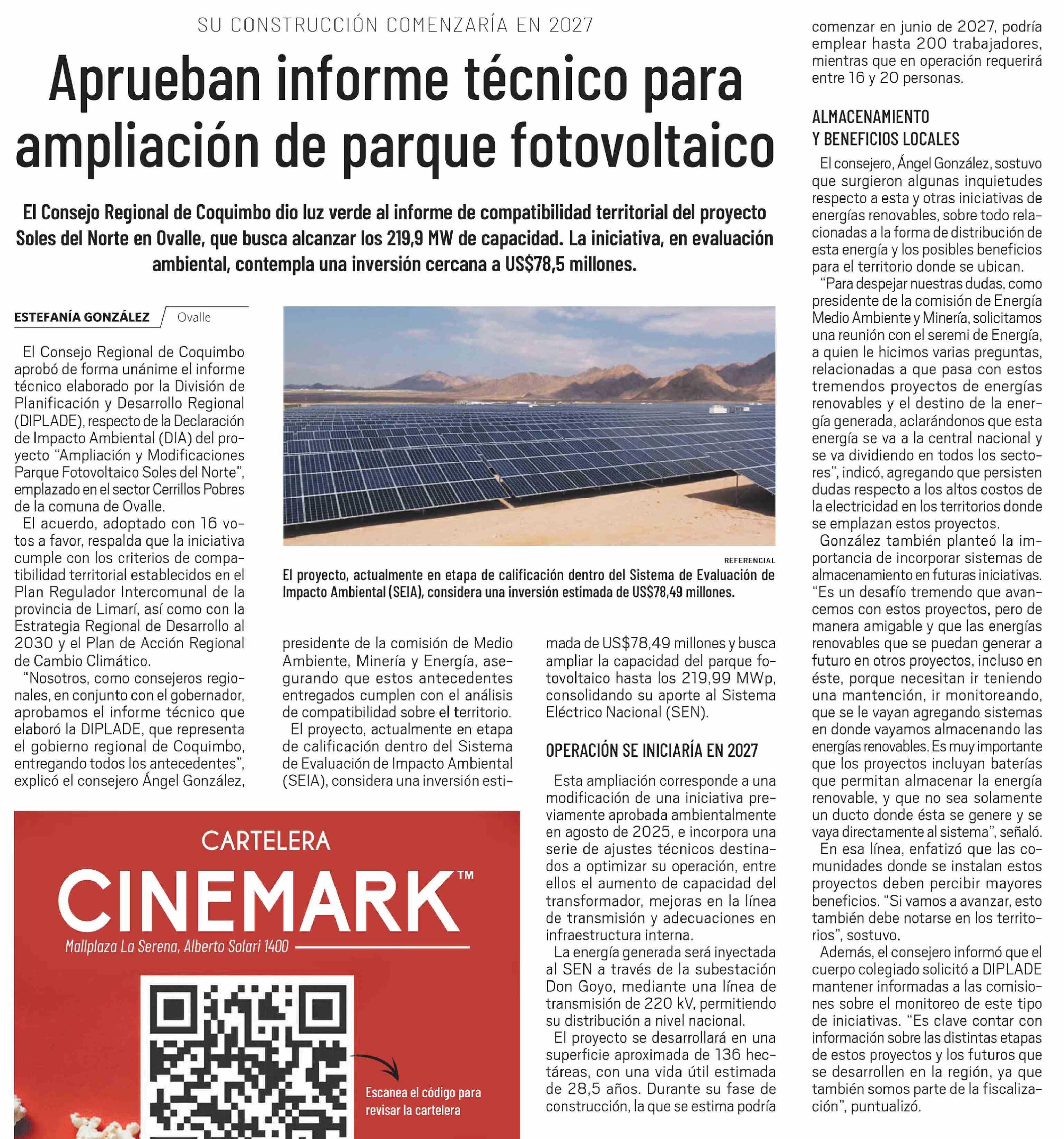 Aprueban informe técnico para ampliación de parque fotovoltaico