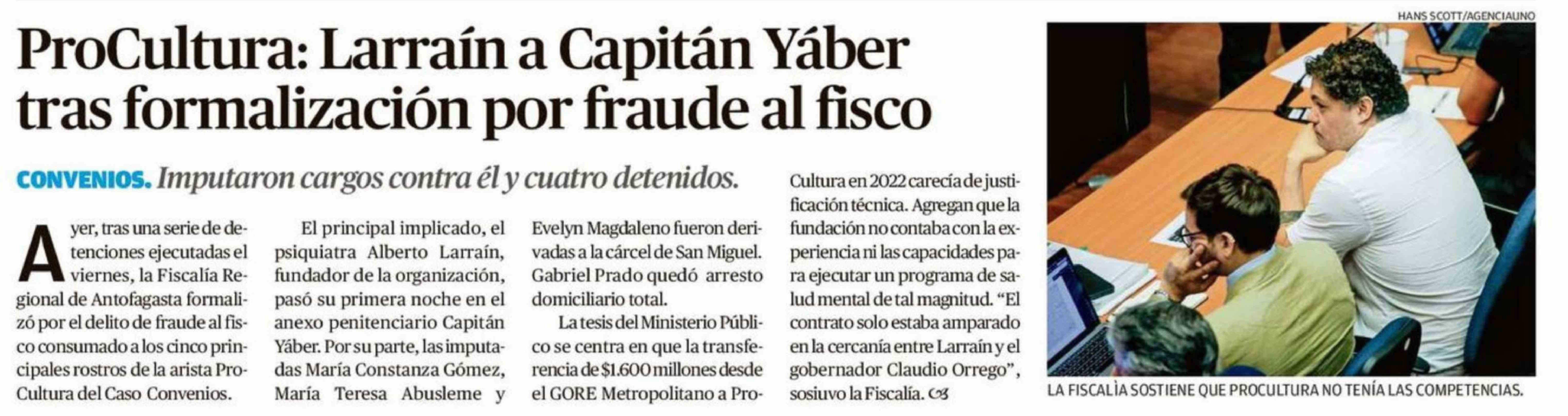 ProCultura: Larraín a Capitán Yber tras formalización por fraude al fisco