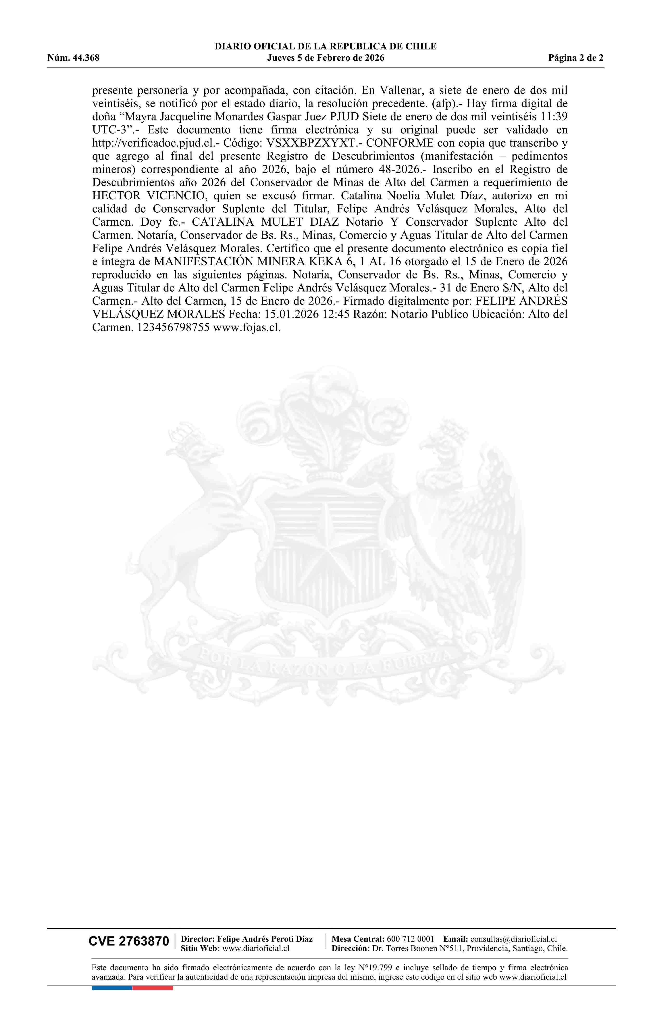 DIARIO OFICIAL CHILE - BOLETÍN OFICIAL DE MINERÍA (DIARIO OFICIAL CHILE – BOM – MANIFESTACIONES MIN)