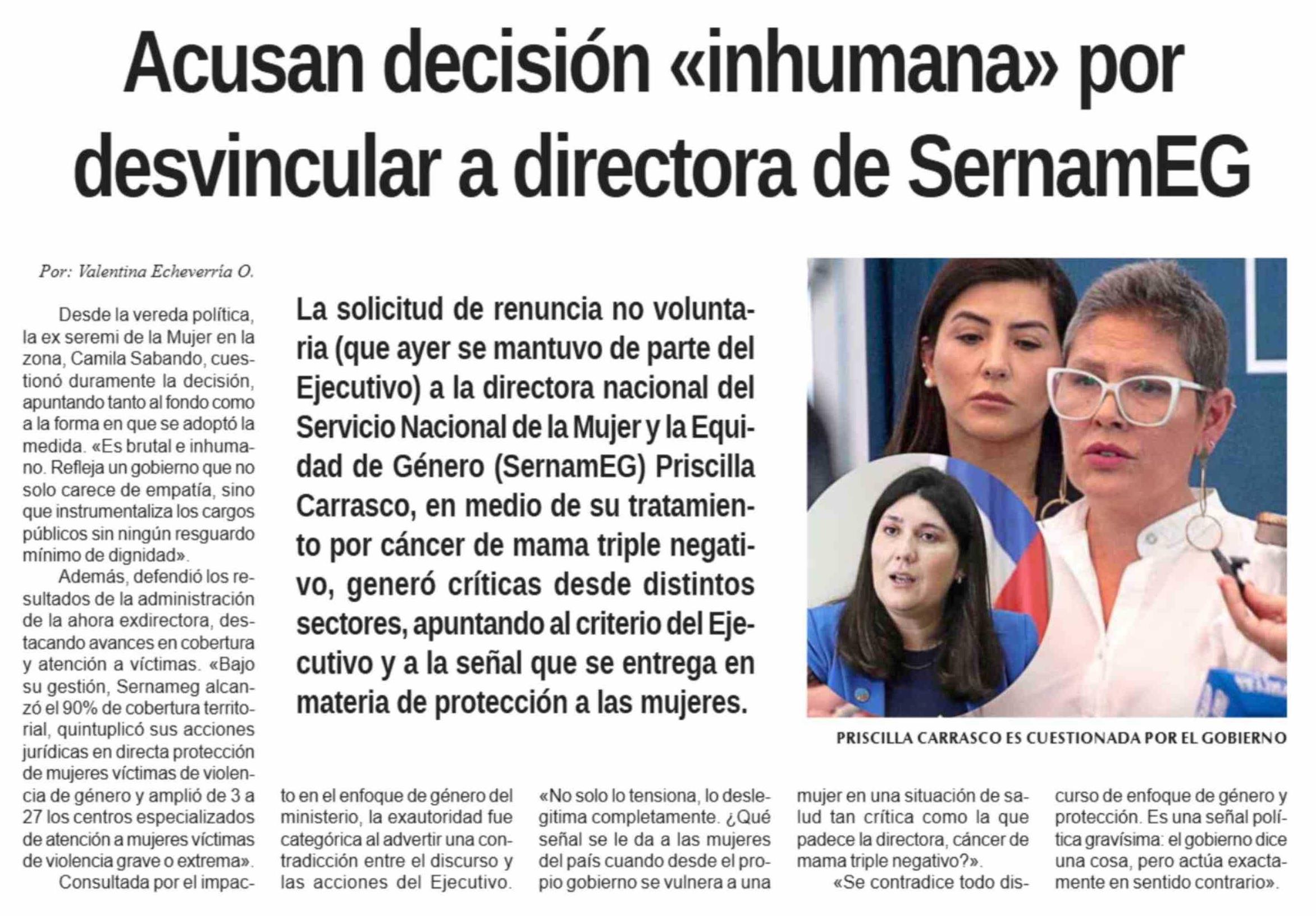 Acusan decisión «inhumana» por desvincular a directora de SernamEG