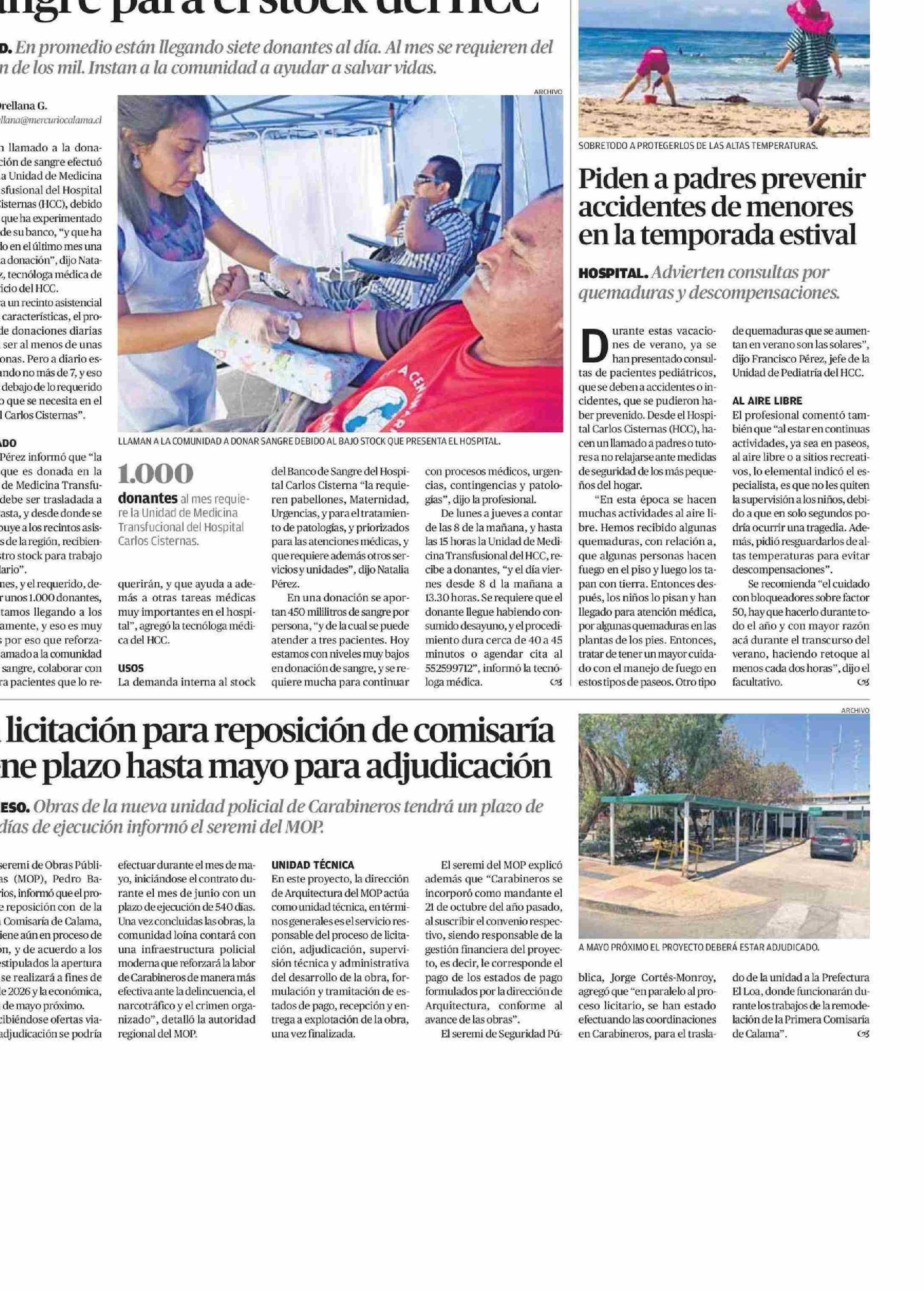 Llaman a calameños a donar sangre para el stock del HCC