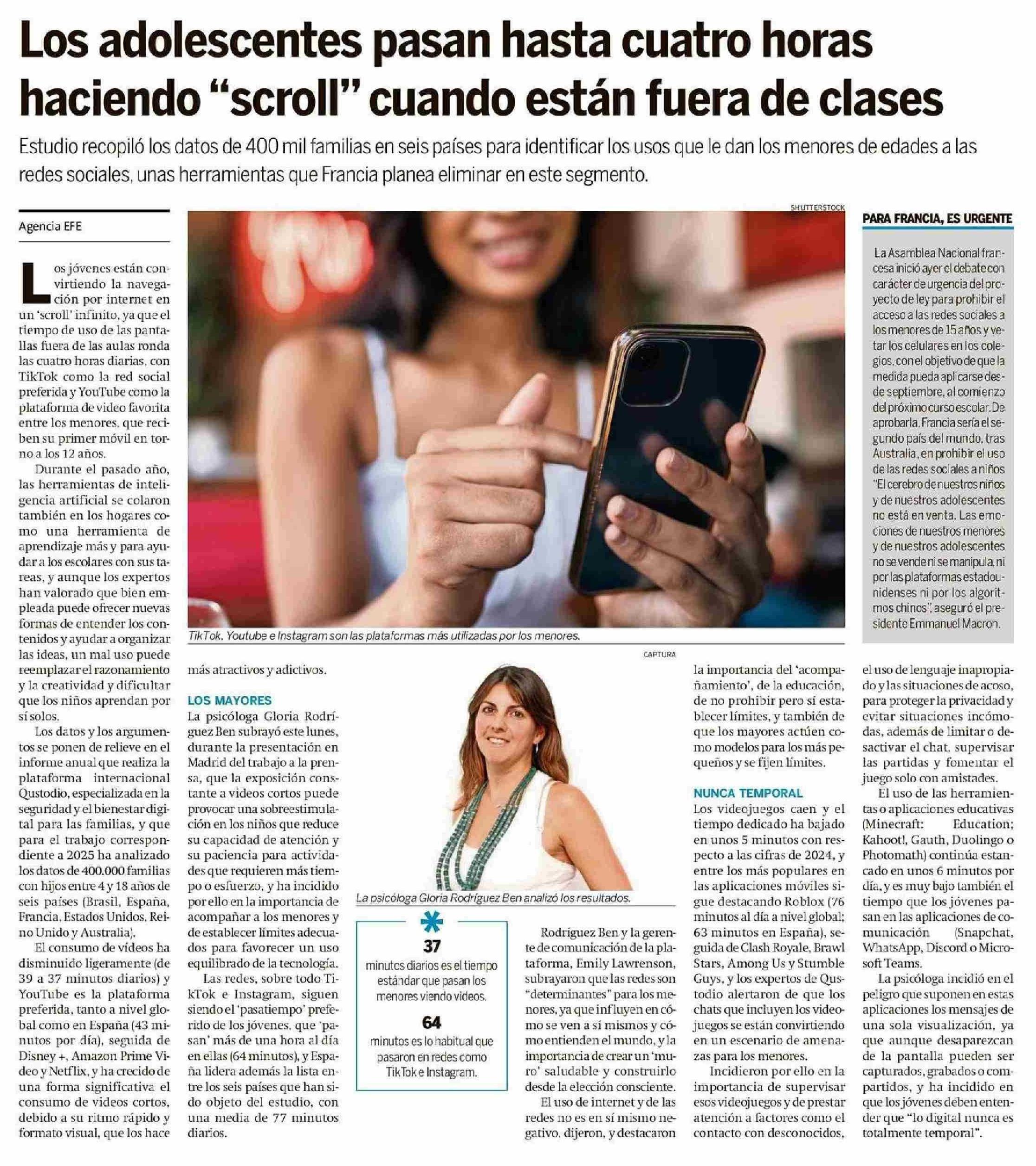 Los adolescentes pasan hasta cuatro horas haciendo "scroll" cuando están fuera de clases