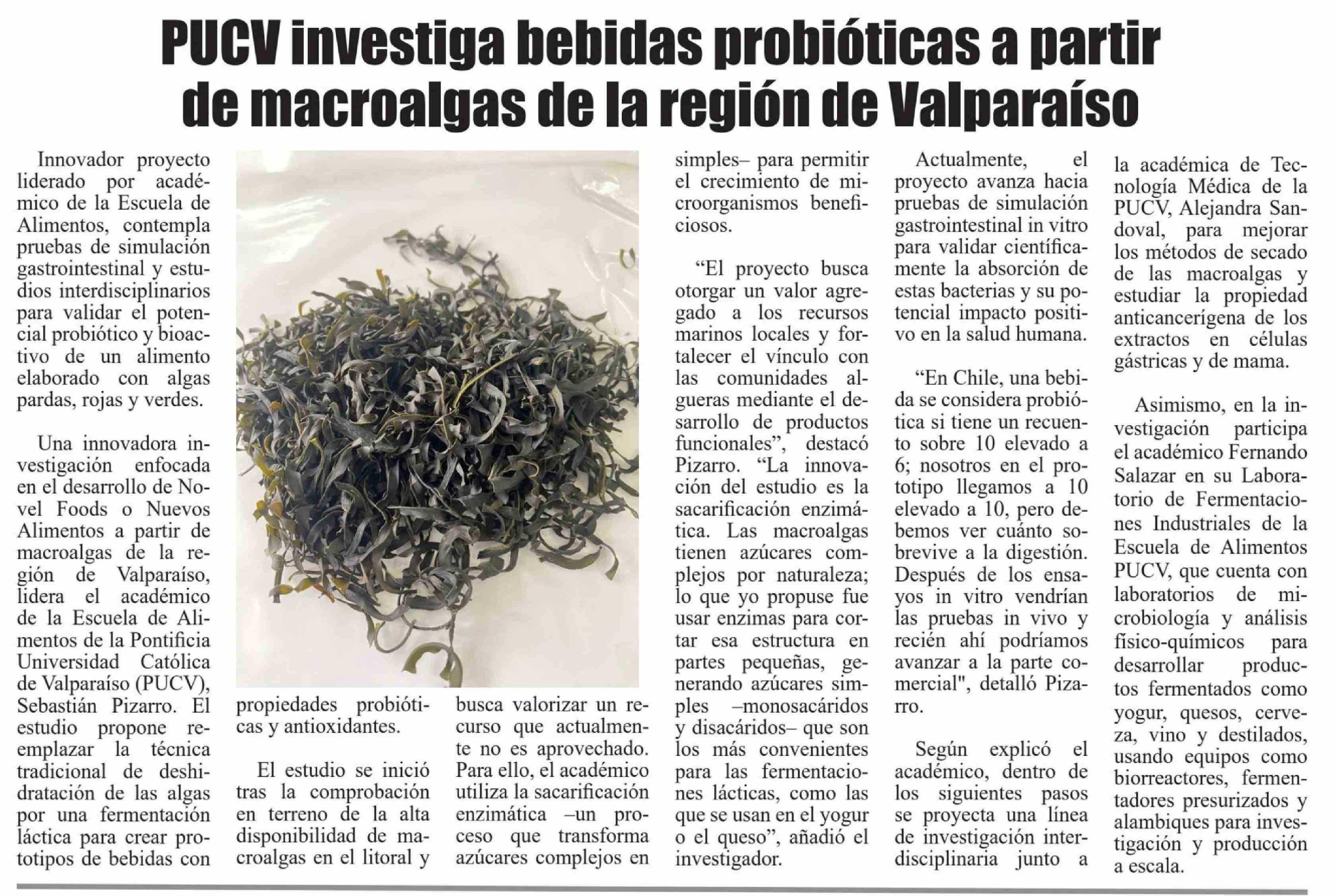 PUCV investiga bebidas probióticas a partir de macroalgas de la región de Valparaíso