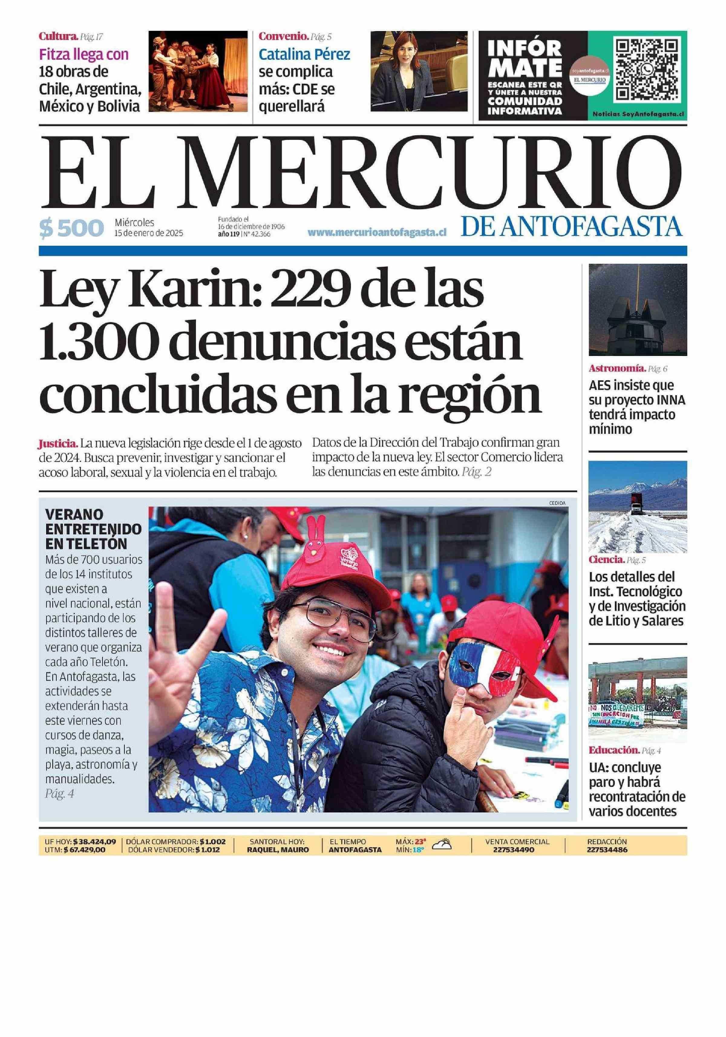 PORTADA EL MERCURIO DE ANTOFAGASTA CHILE