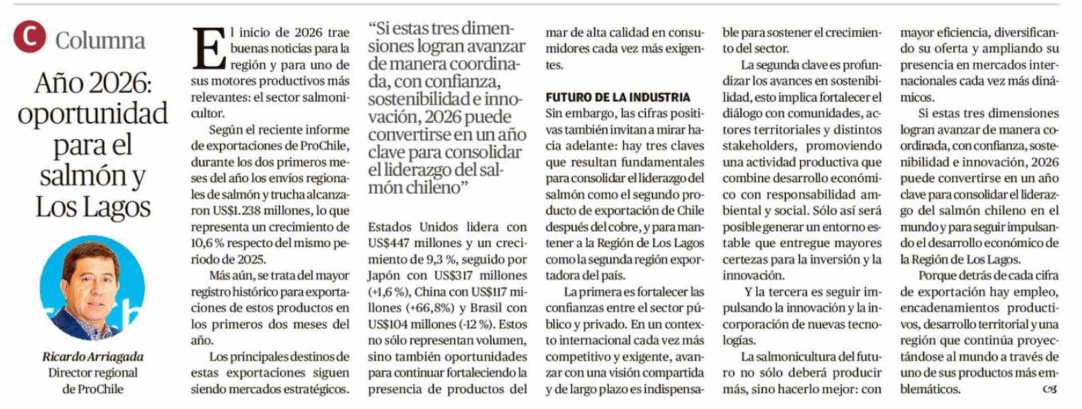 Columnas de Opinión: Año 2026: oportunidad para el salmón y Los Lagos