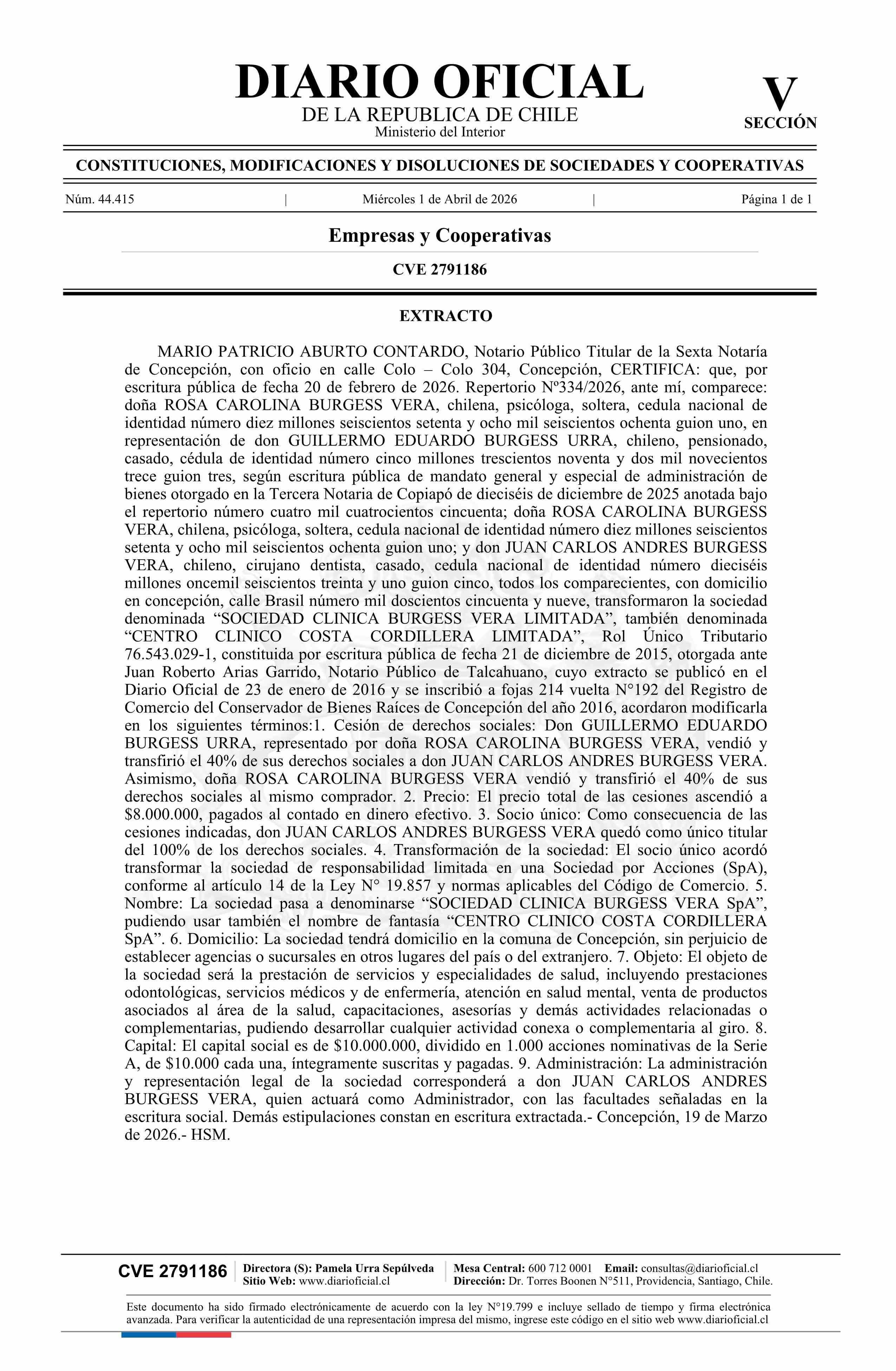SOCIEDAD CLINICA BURGESS VERA LIMITADA 76.543.029-1*
