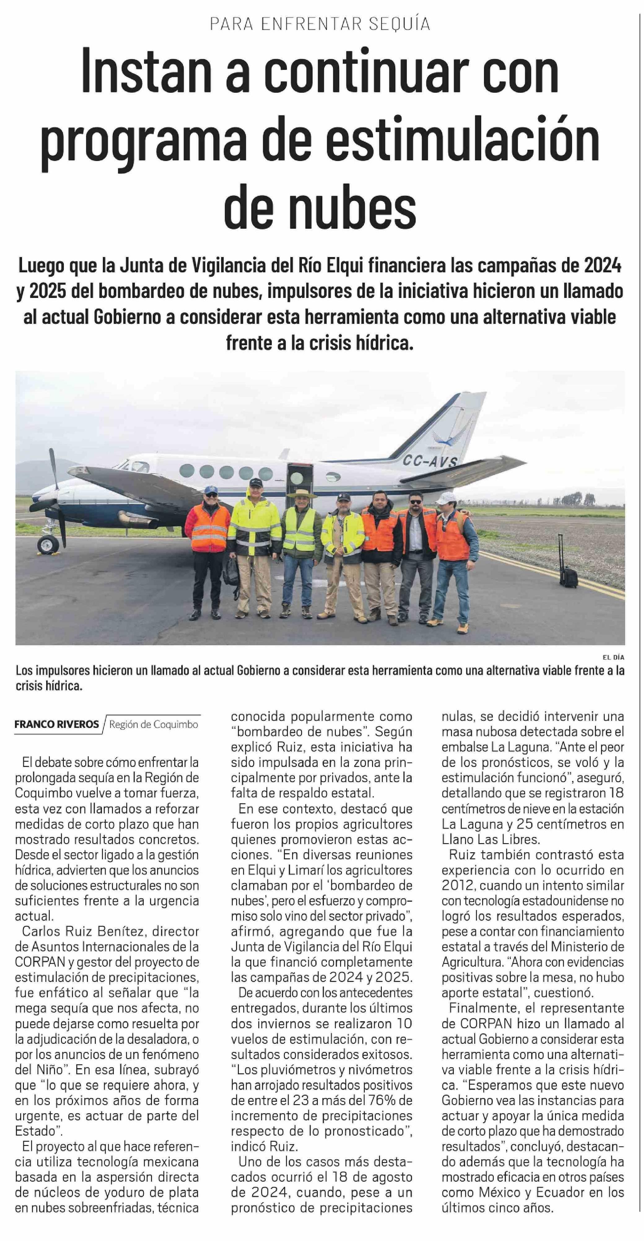 Instan a continuar con programa de estimulación de nubes