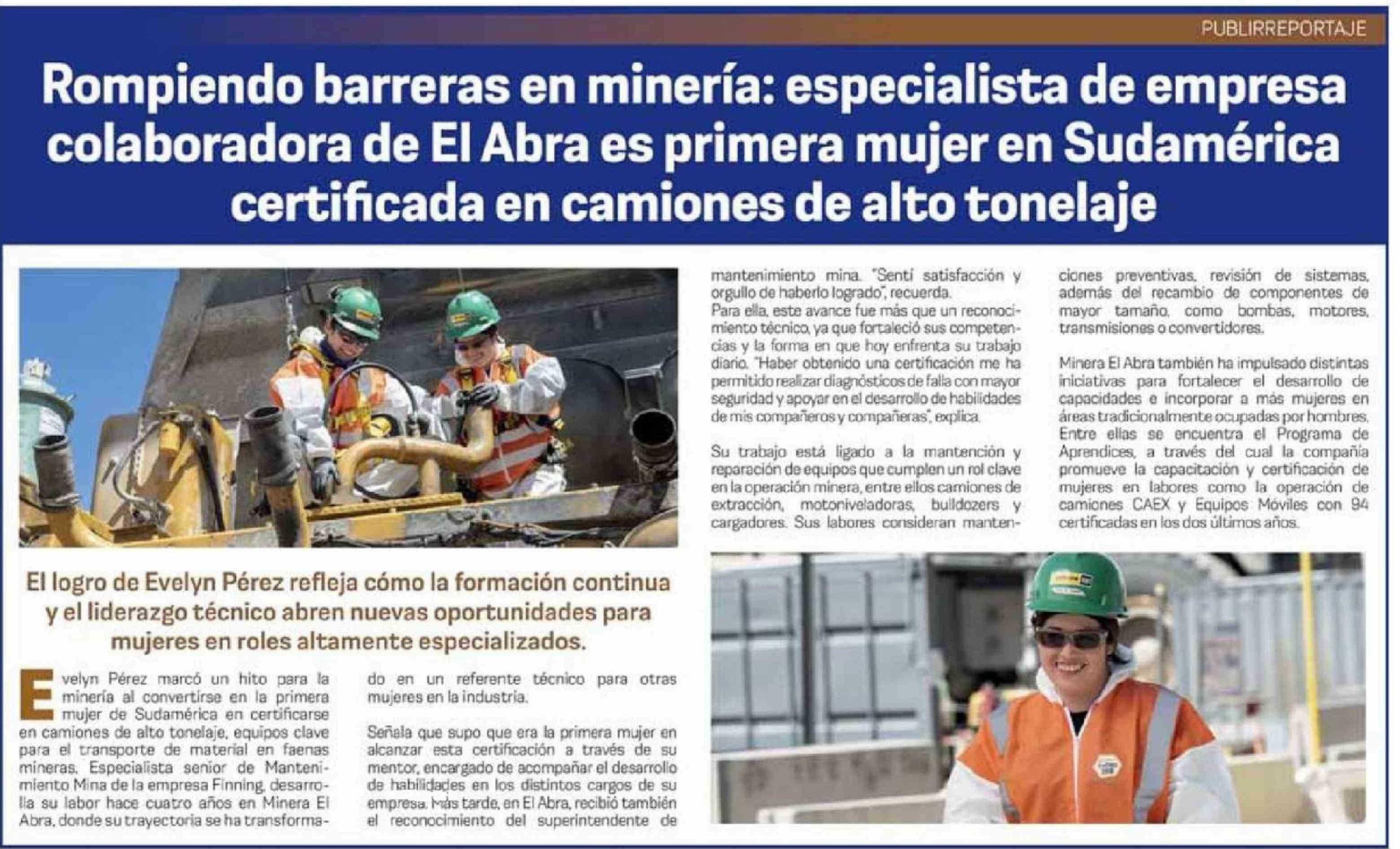 | Título: | Rompiendo barreras en minería: especialista de empresa colaboradora de El Abra es primera mujer en Sudamérica certificada en camiones de alto tonelaje |