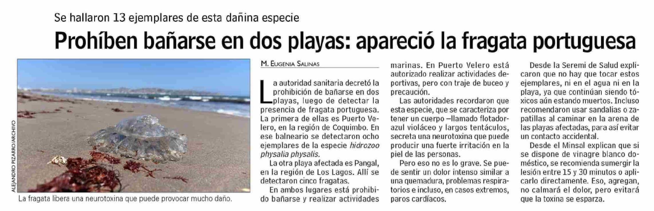 Prohíben bañarse en dos playas: apareció la fragata portuguesa