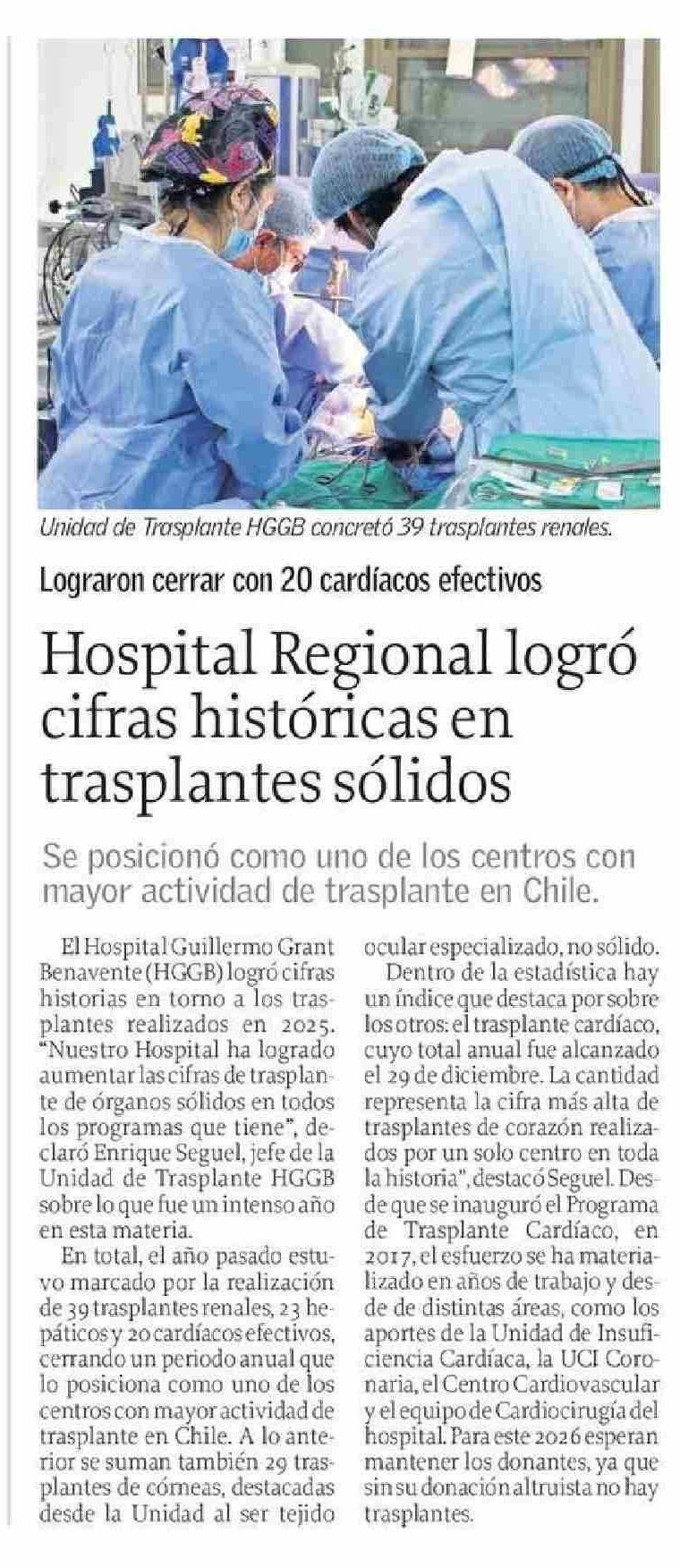 Título: Hospital Regional logró cifras históricas en trasplantes sólidos
