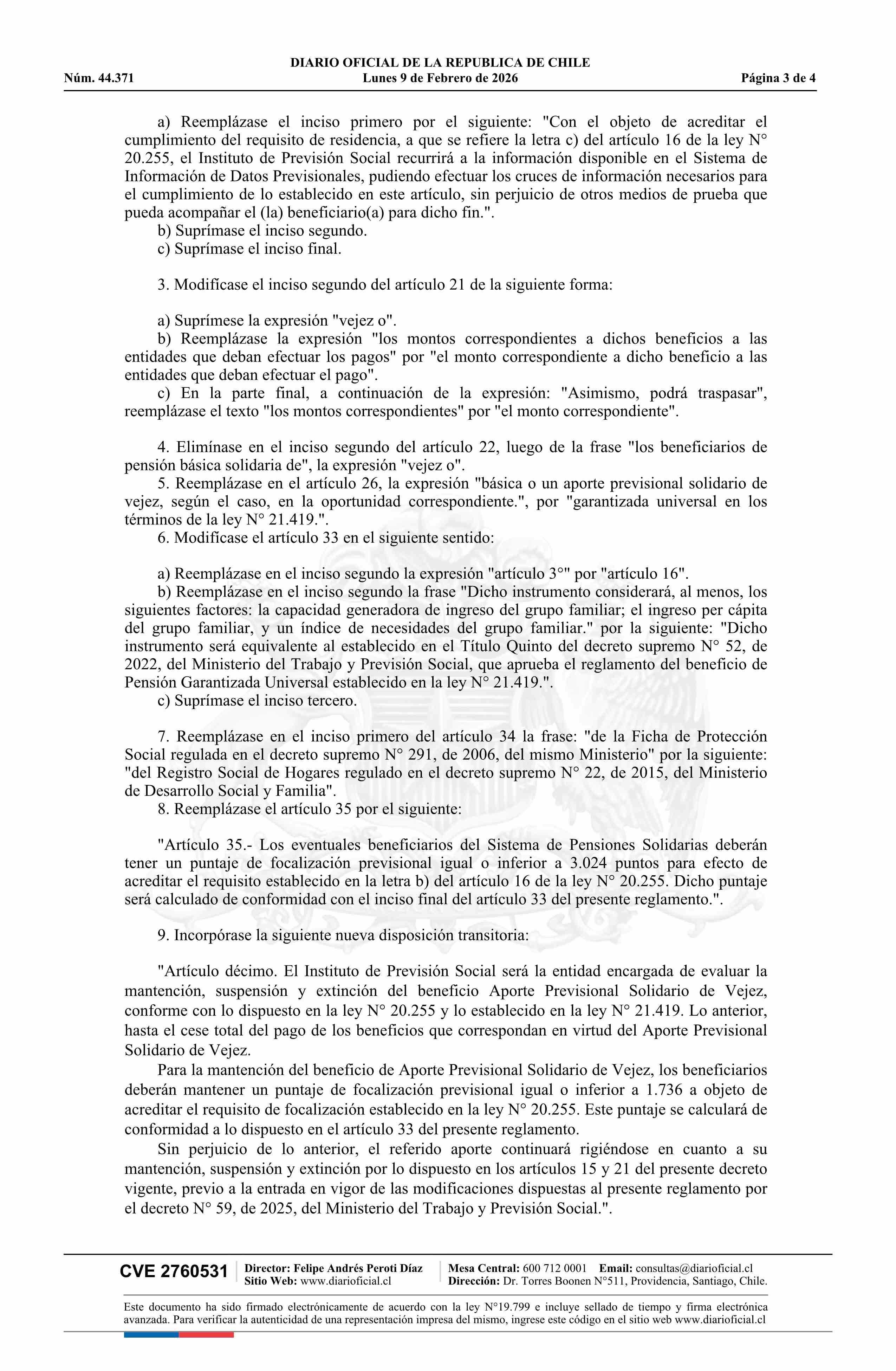 Título: Decreto número 59, de 2025.- Modifica decreto N° 23, de 2008, que aprueba el Reglamento del Sistema de Pensiones Solidarias establecido en la ley N° 20.255
