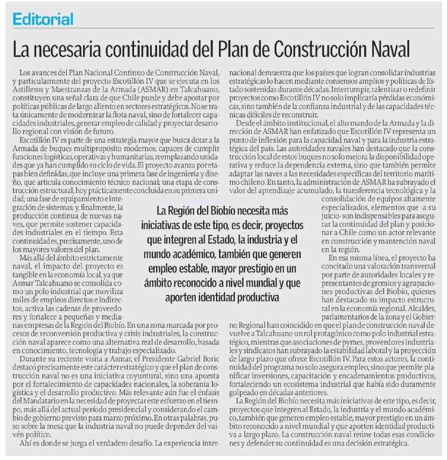 Editorial: La necesaria continuidad del Plan de Construcción Naval