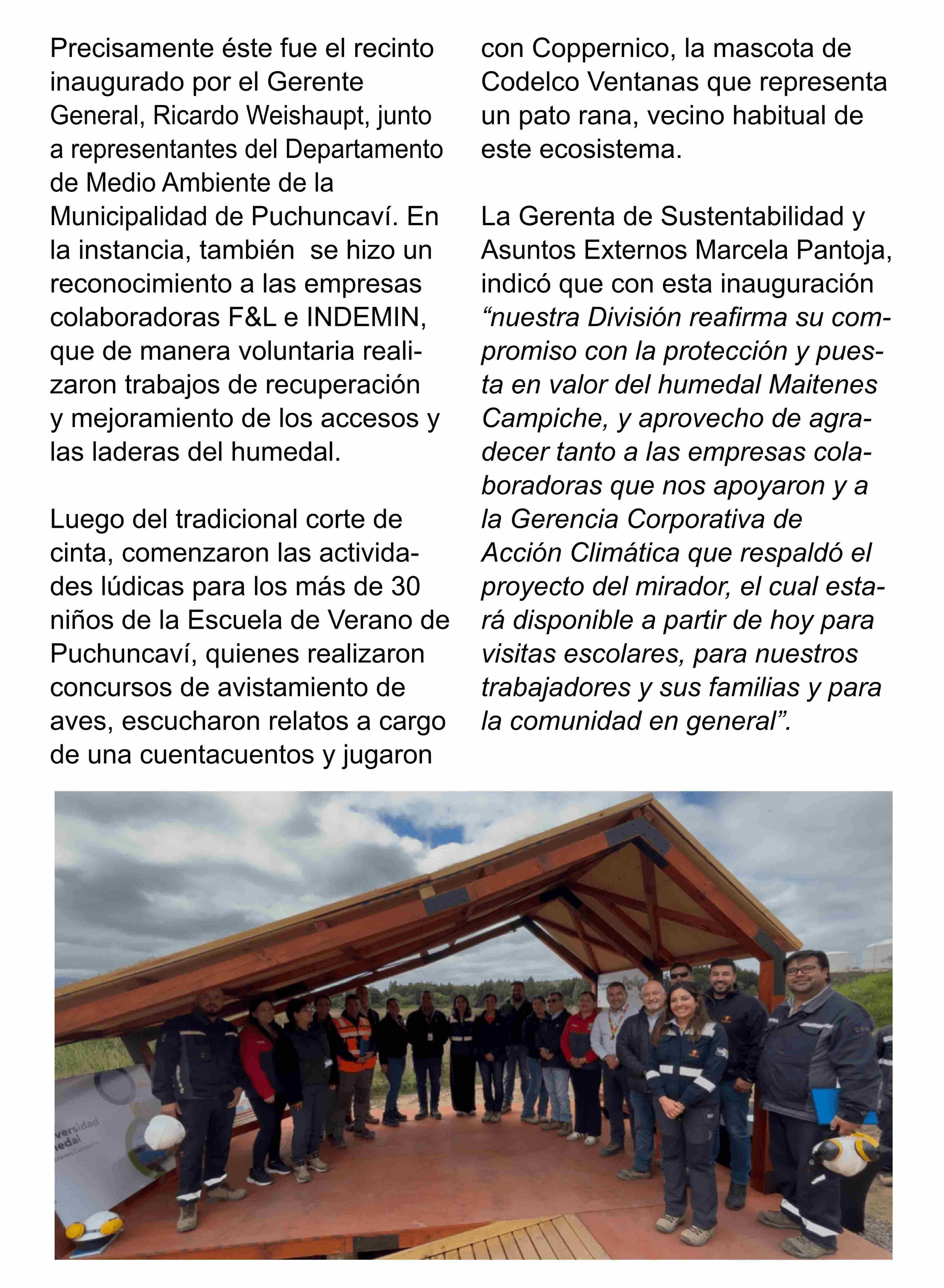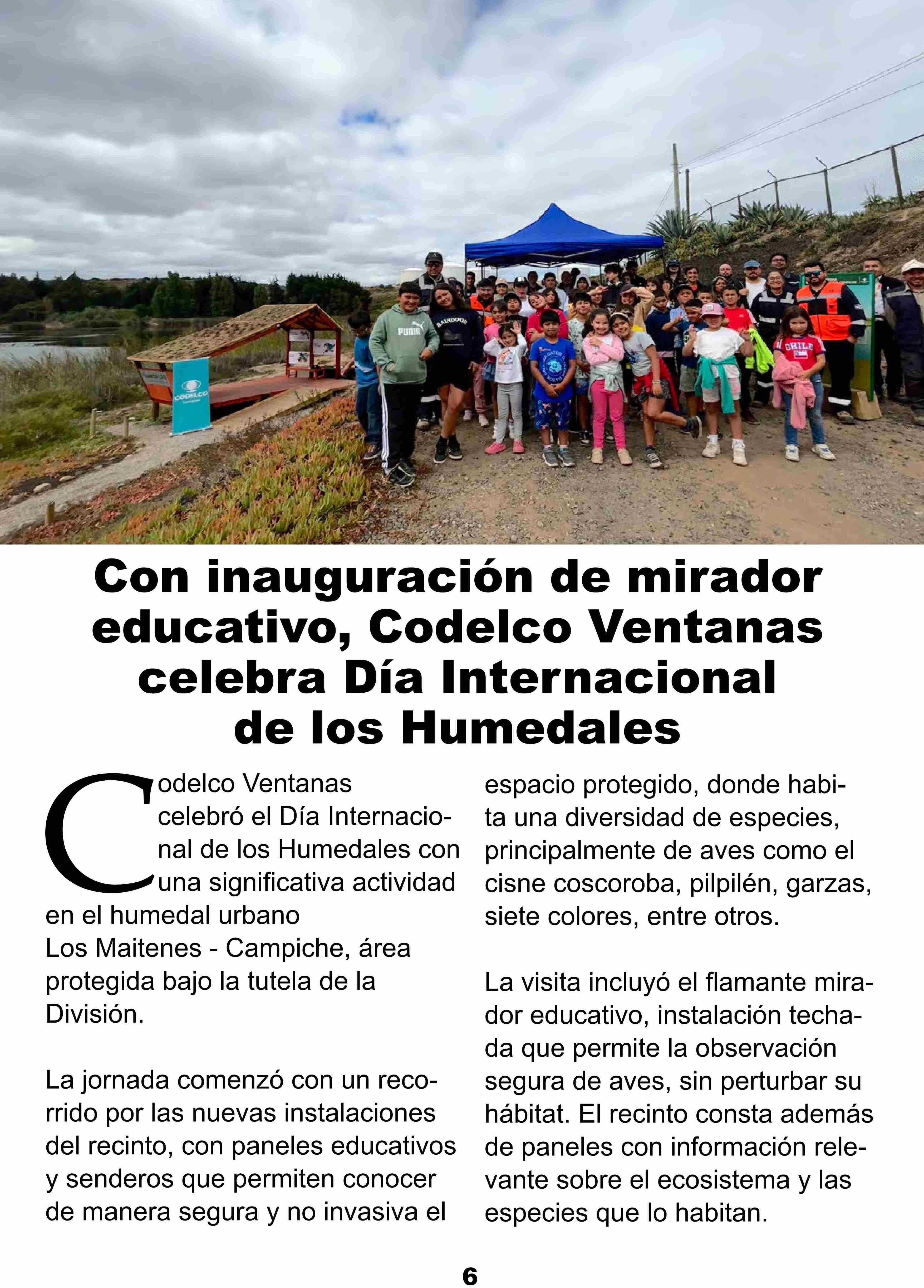| Título: | Con inauguración de mirador educativo, Codelco Ventanas celebra Día Internacional de los Humedales |