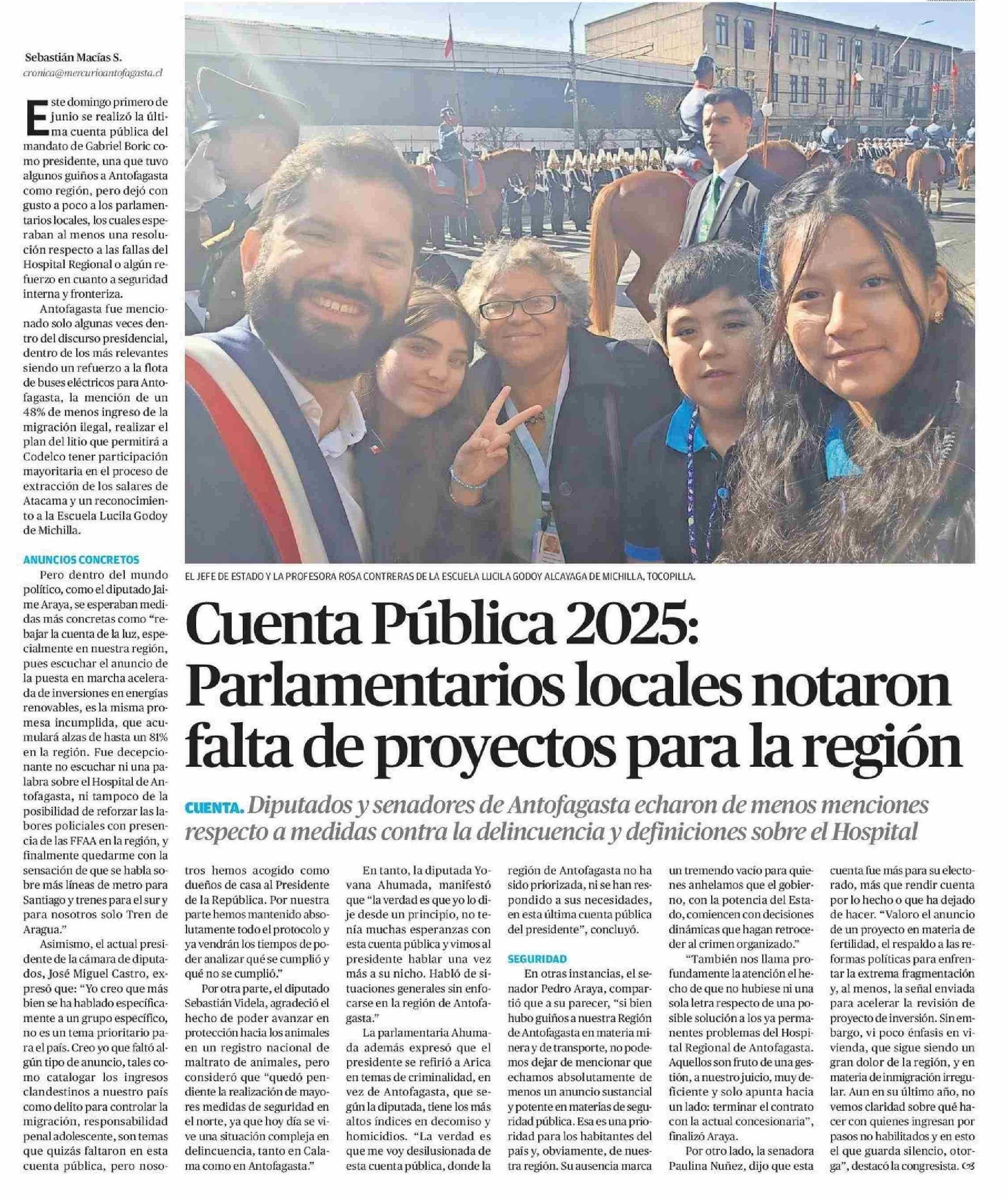 Título: Cuenta Pública 2025: Parlamentarios locales notaron falta de proyectos para la región