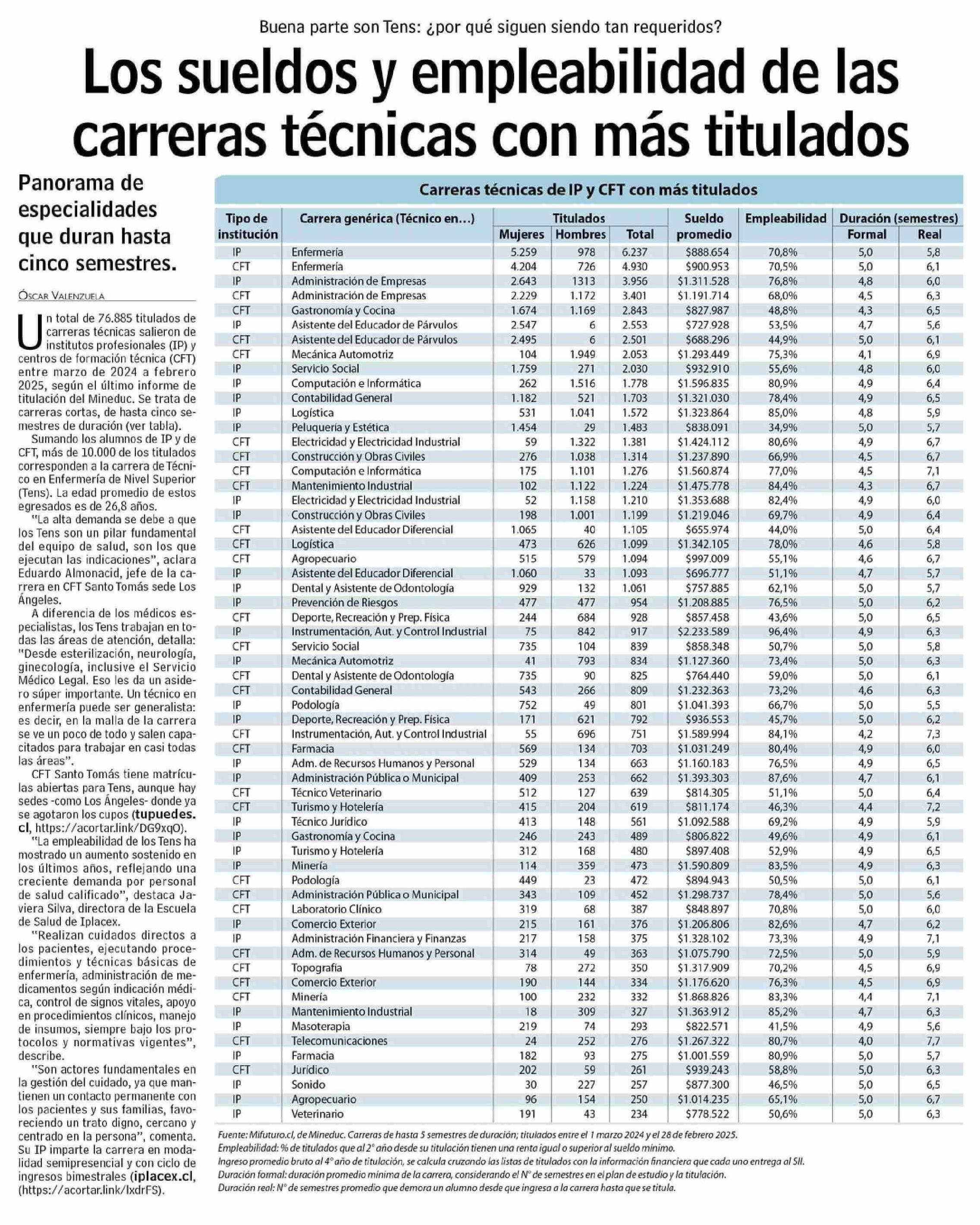 Los sueldos y empleabilidad de las carreras técnicas con más titulados