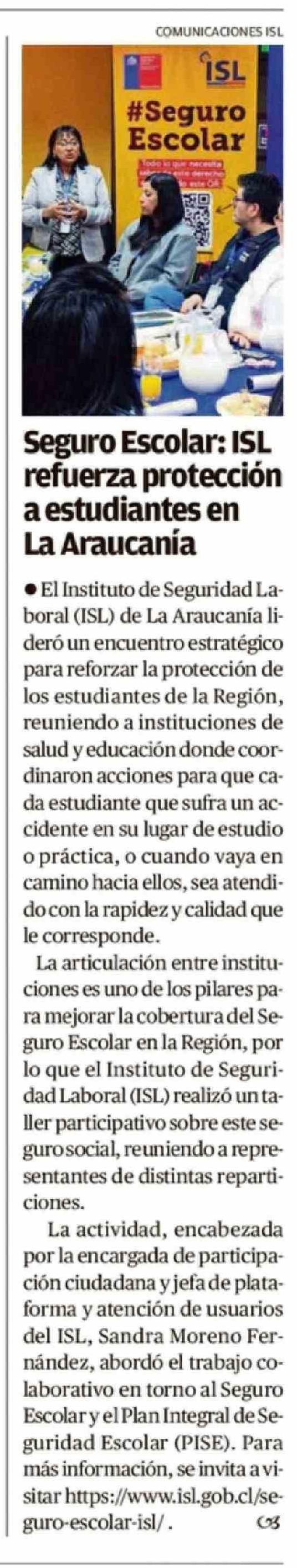 Seguro Escolar: ISL refuerza protección a estudiantes en La Araucania