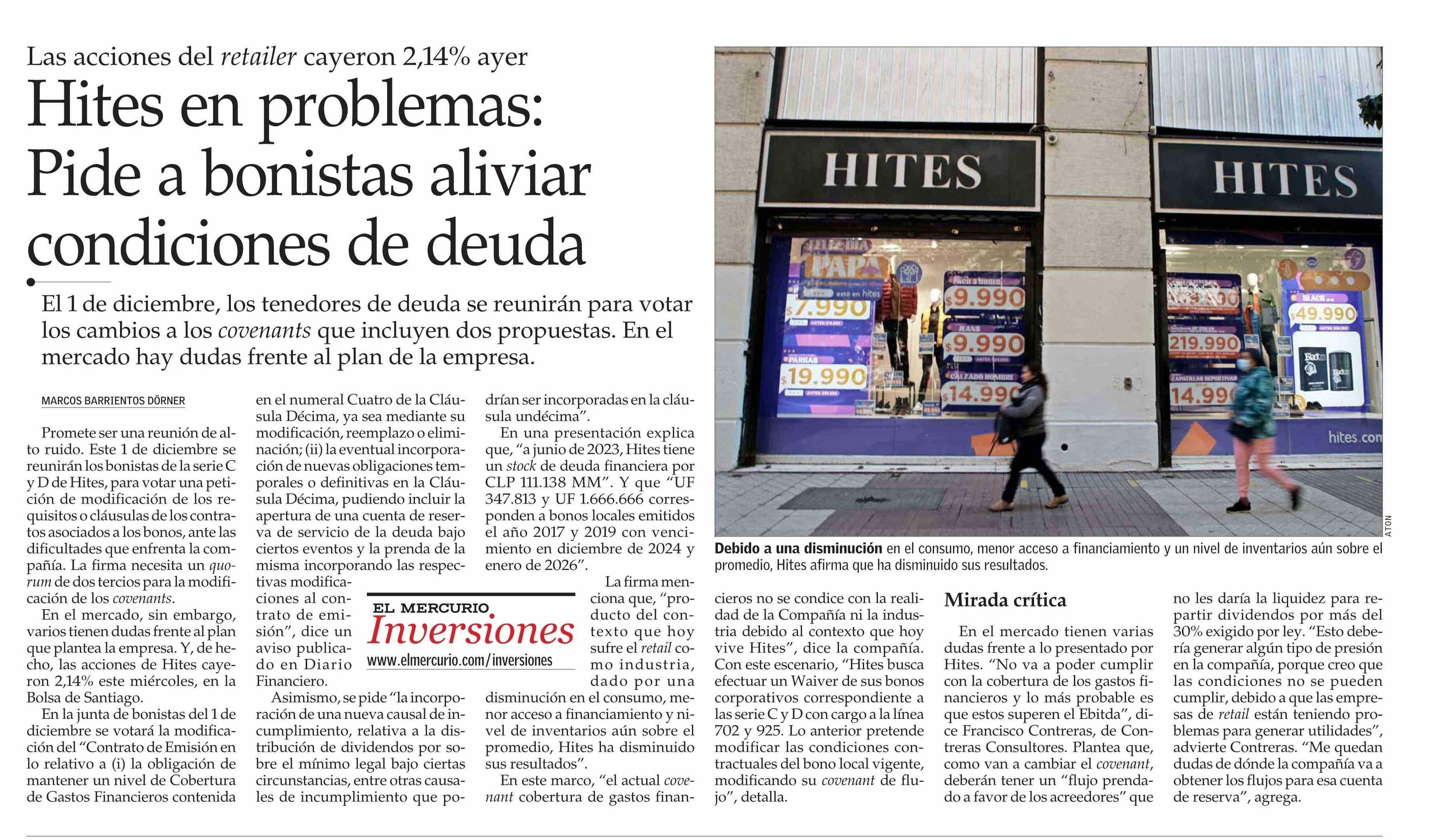 Hites en problemas: Pide a bonistas aliviar condiciones de deuda