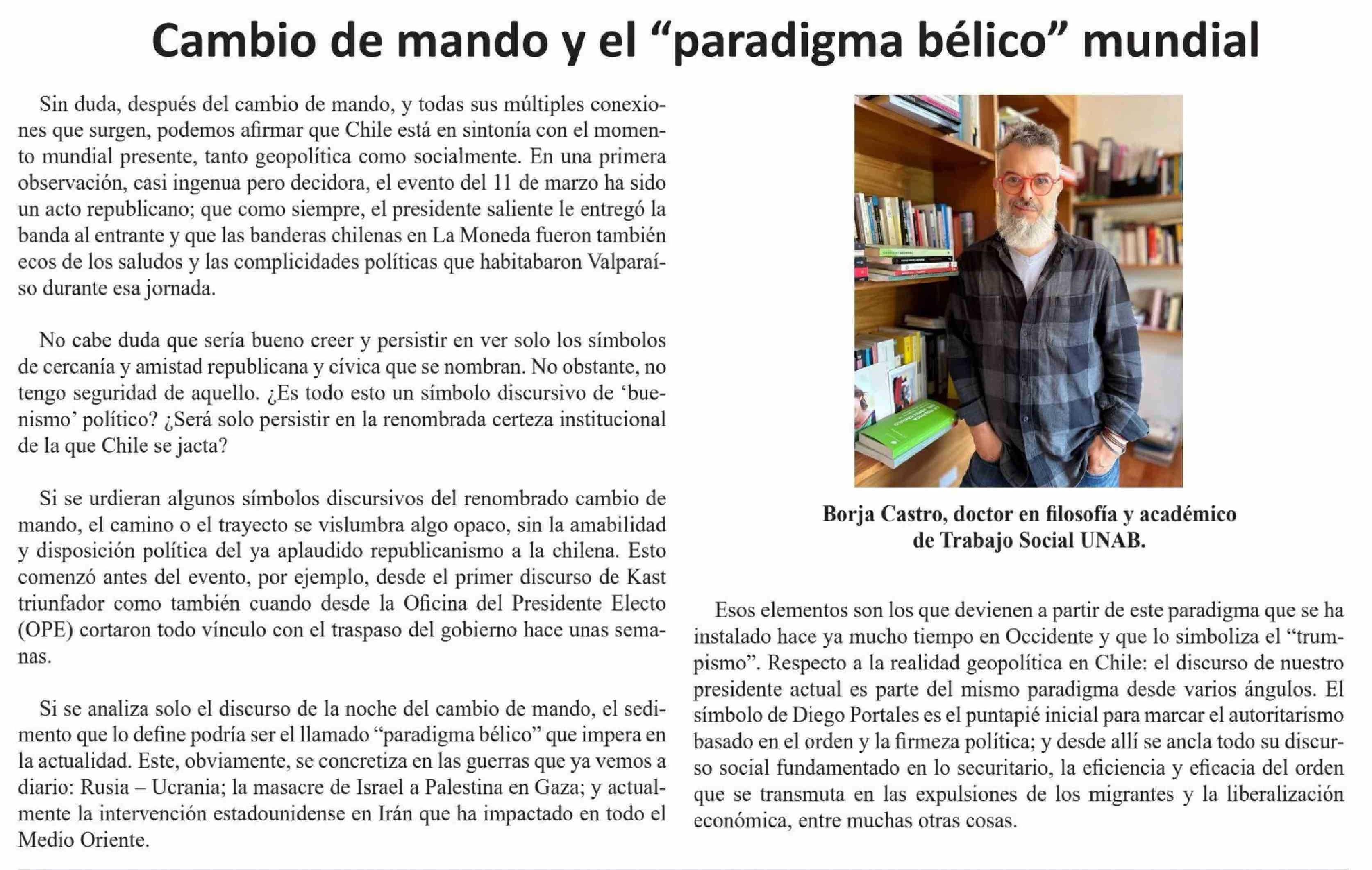 Columnas de Opinión: Cambio de mando y el "paradigma bélico" mundial