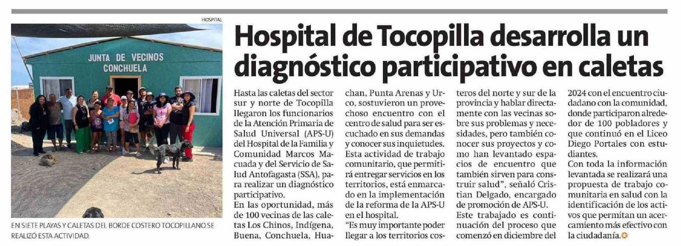 HOSPTAL Hospital de Tocopilla desarrolla un diagnóstico participativo en caletas