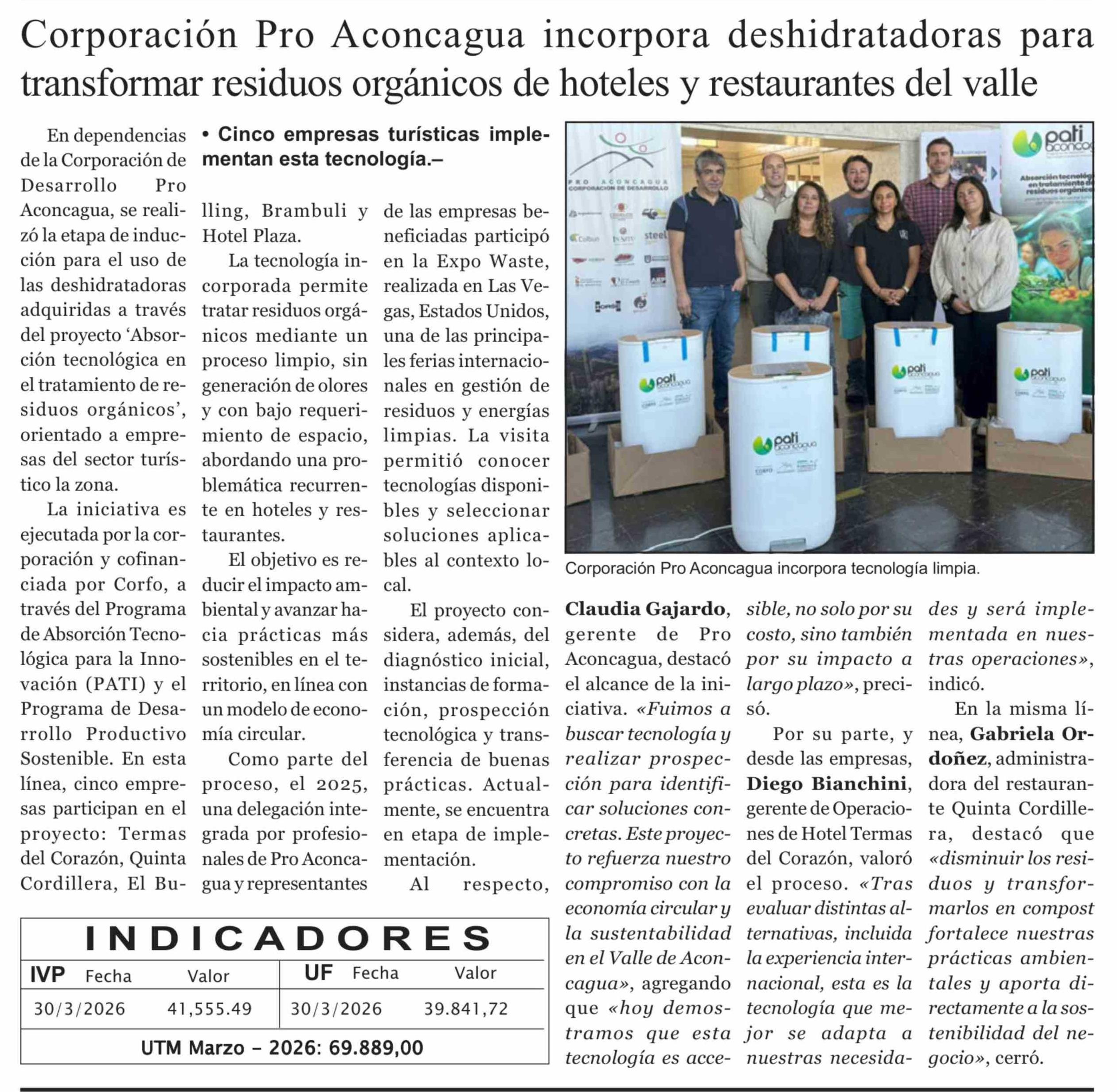 Corporación Pro Aconcagua incorpora deshidratadoras para transformar residuos orgánicos de hoteles y restaurantes del valle