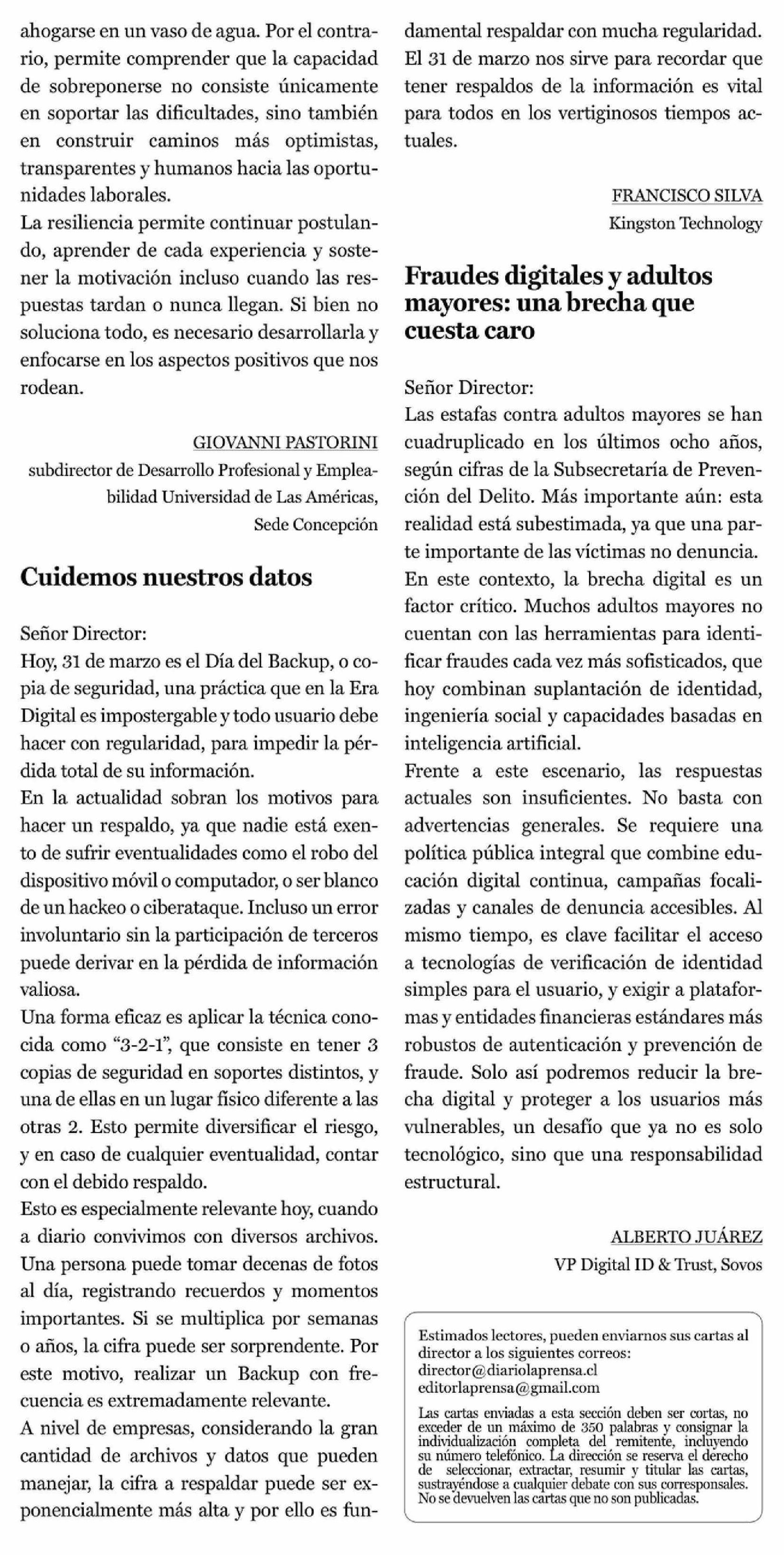 Cartas: Cuidemos nuestros datos