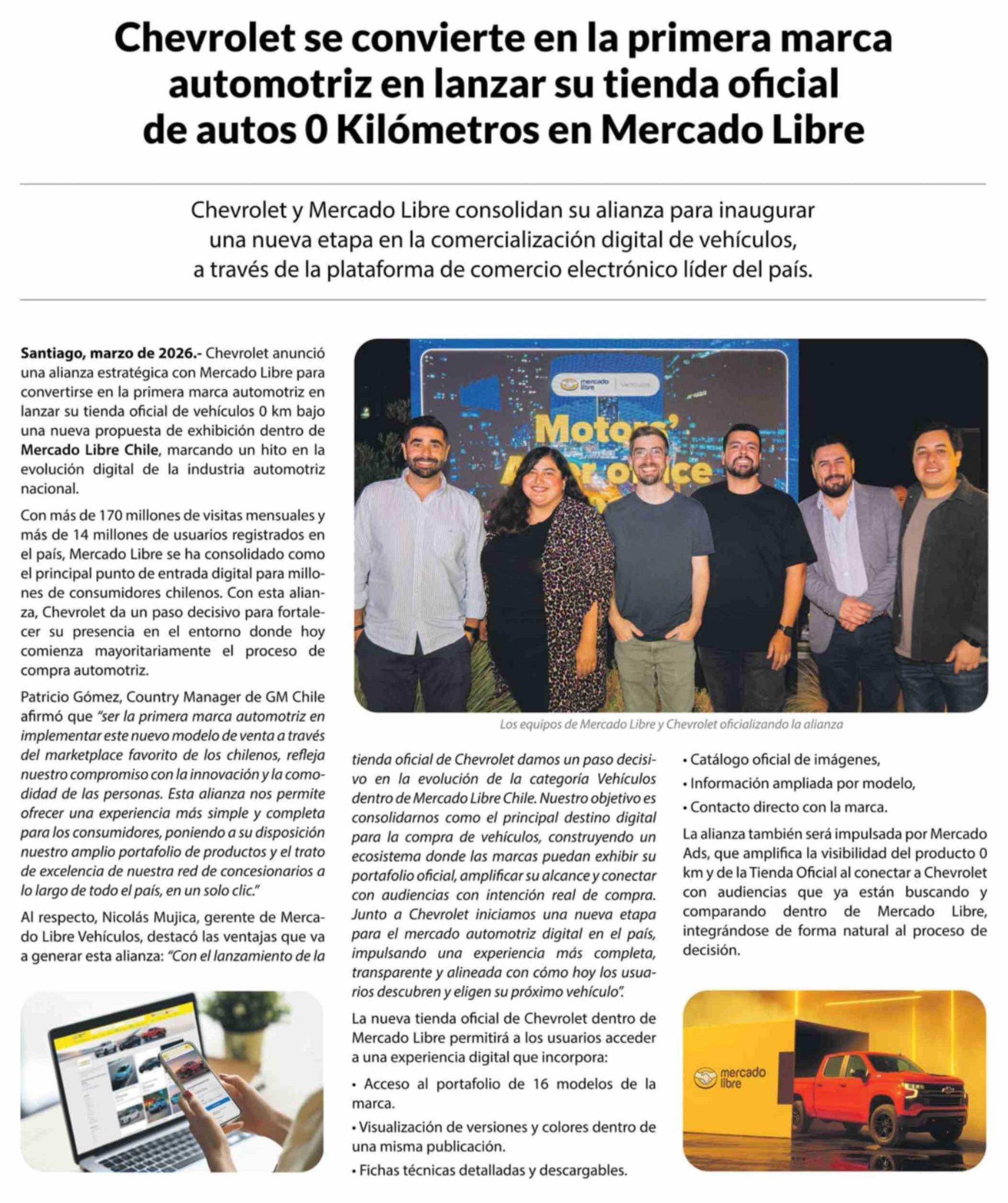 Chevrolet se convierte en la primera marca automotriz en lanzar su tienda oficial de autos 0 Kilómetros en Mercado Libre