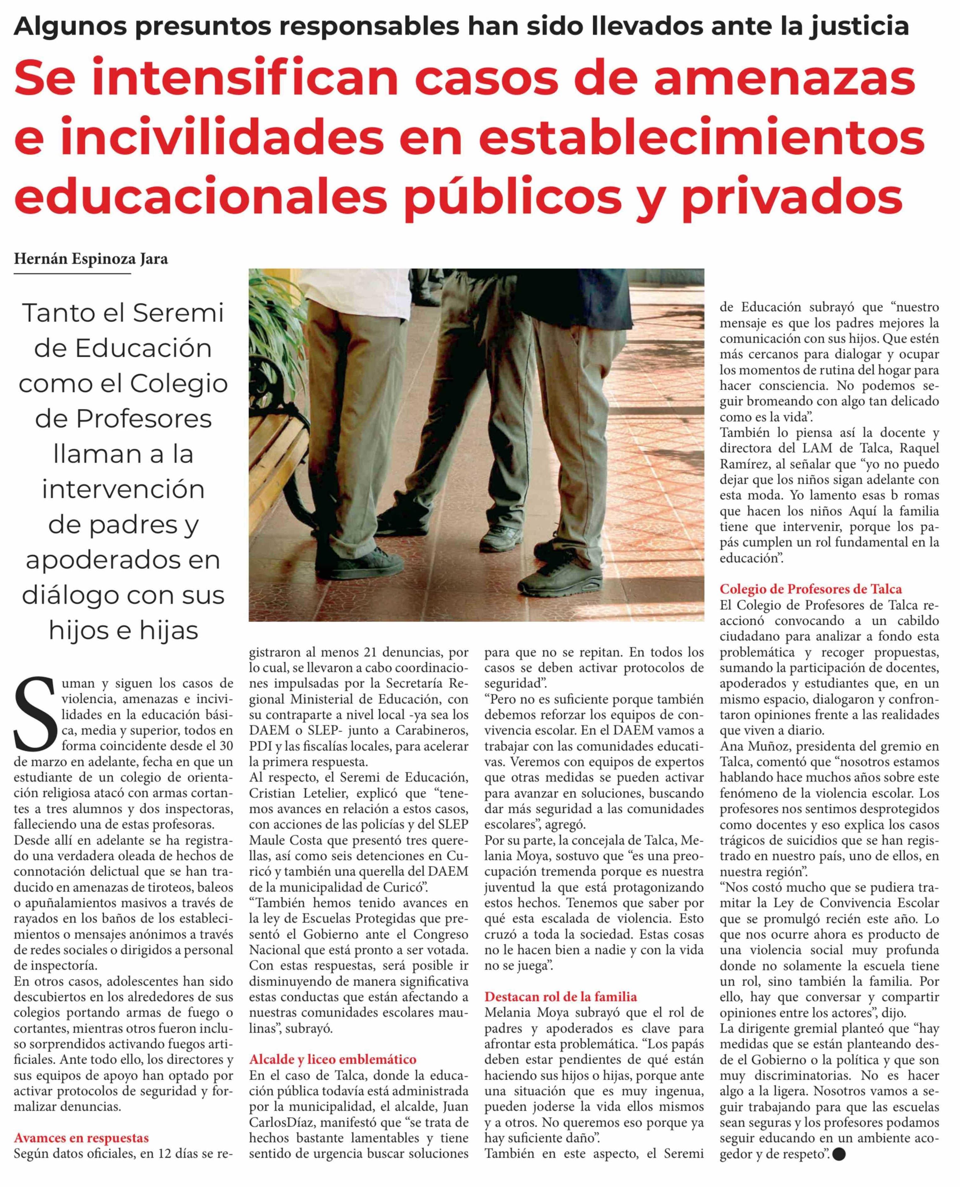 Se intensifican casos de amenazas e incivilidades en establecimientos educacionales públicos y privados
