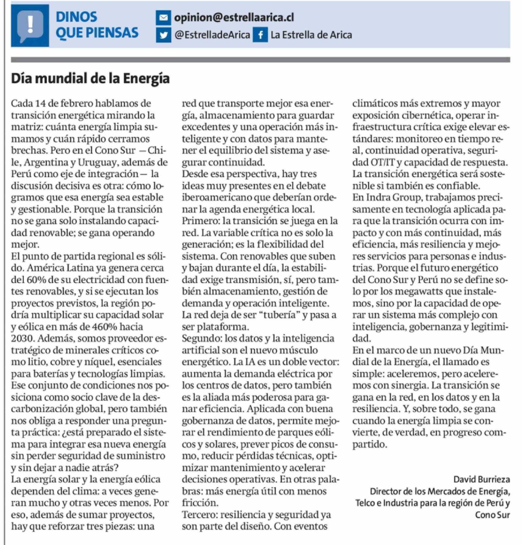 Columnas de Opinión: Día mundial de la Energía