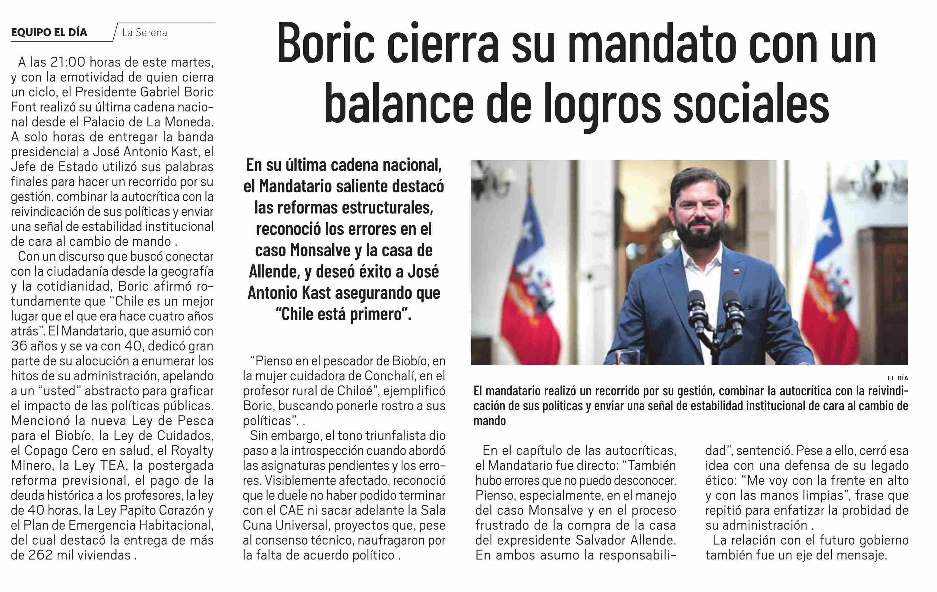 Boric cierra su mandato con un balance de logros sociales