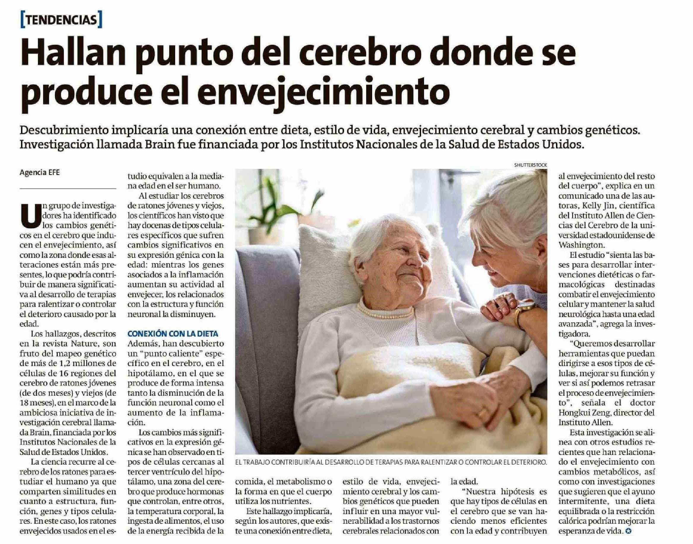 Hallan punto del cerebro donde se produce el envejecimiento