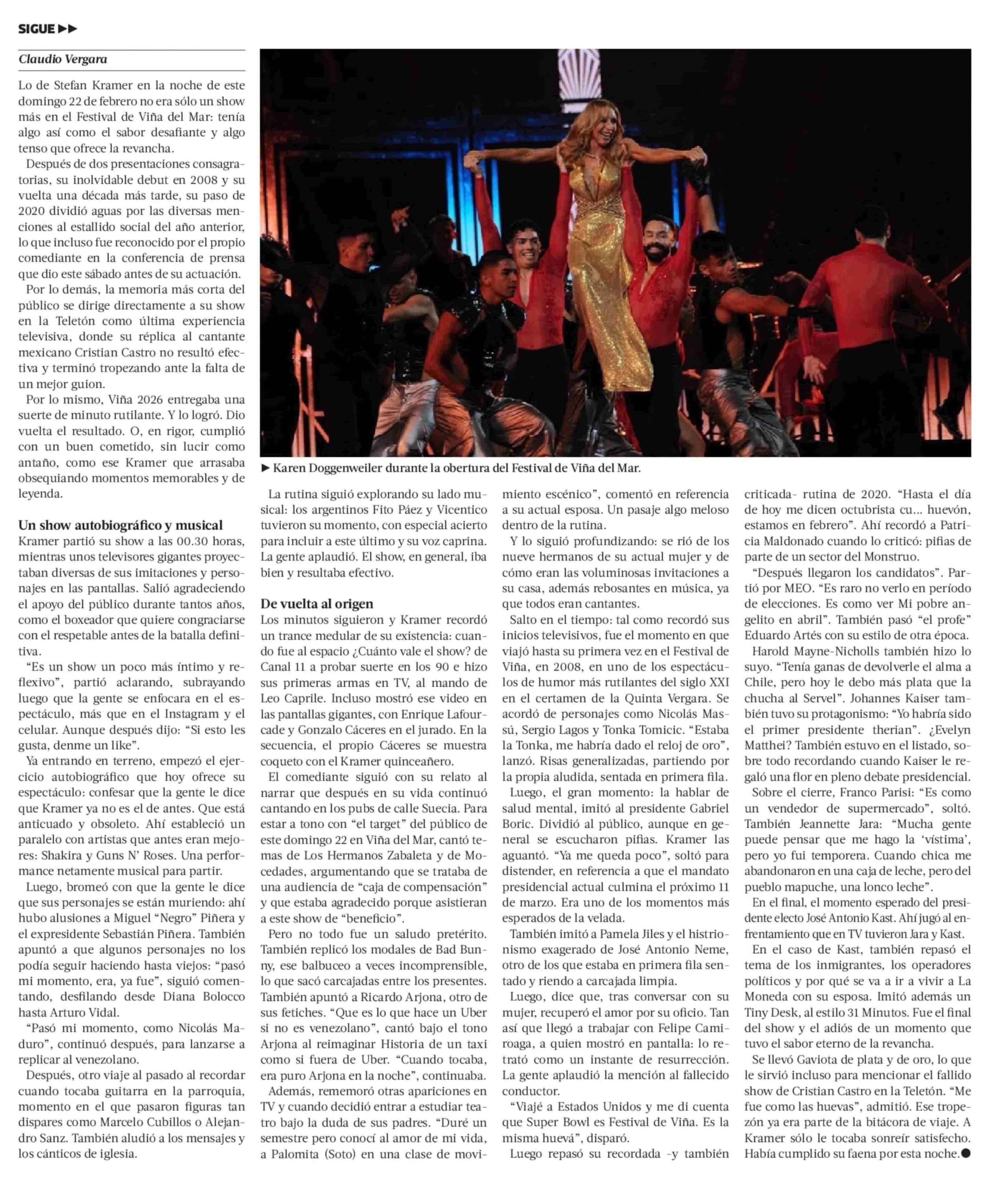 Sin brillar, Kramer triunfa en Viña 2026 y se toma revancha con show donde se ríe de Bad Bunny, Boric y kast