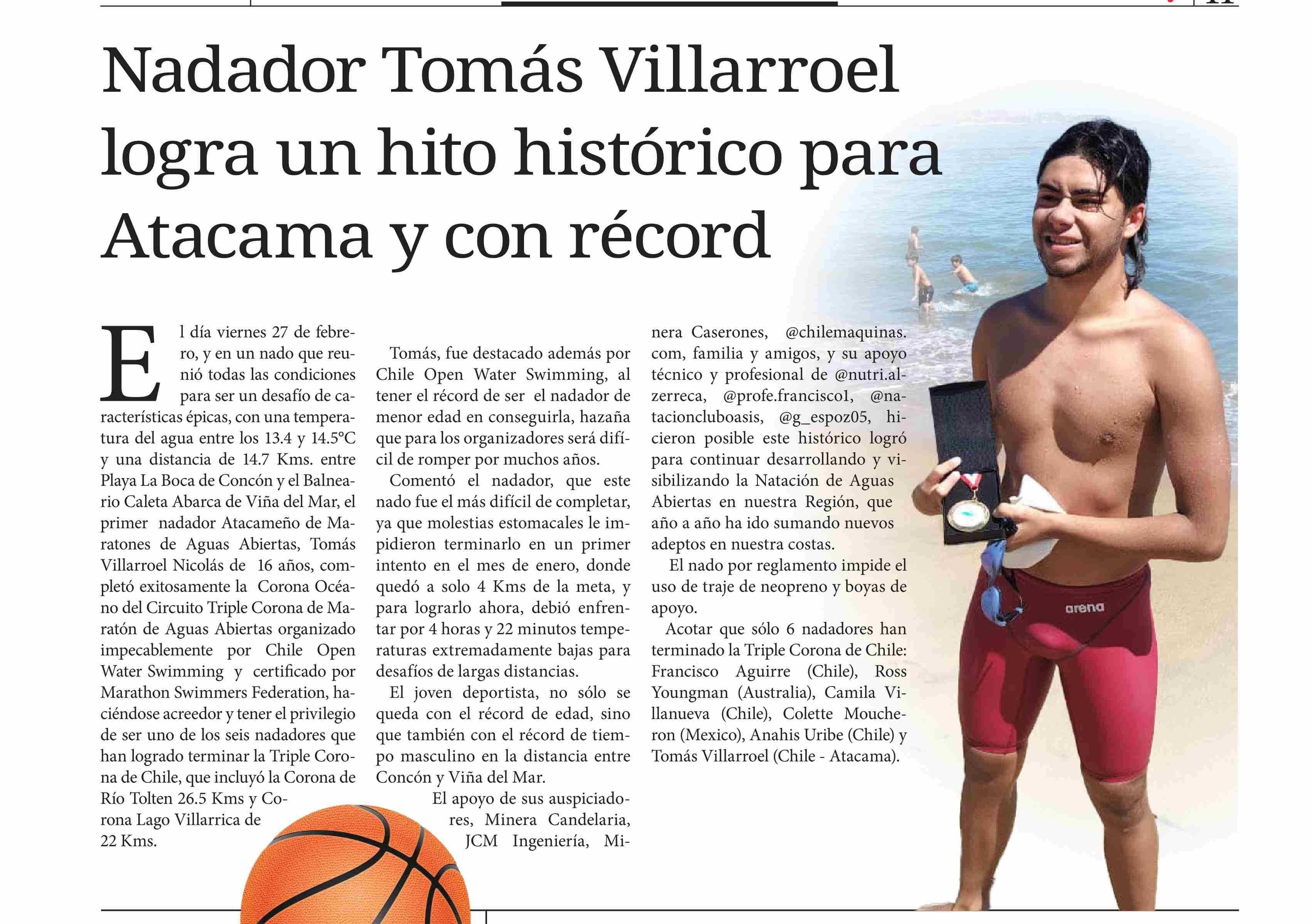 Nadador Tomás Villarroel logra un hito histórico para Atacama y con récord
