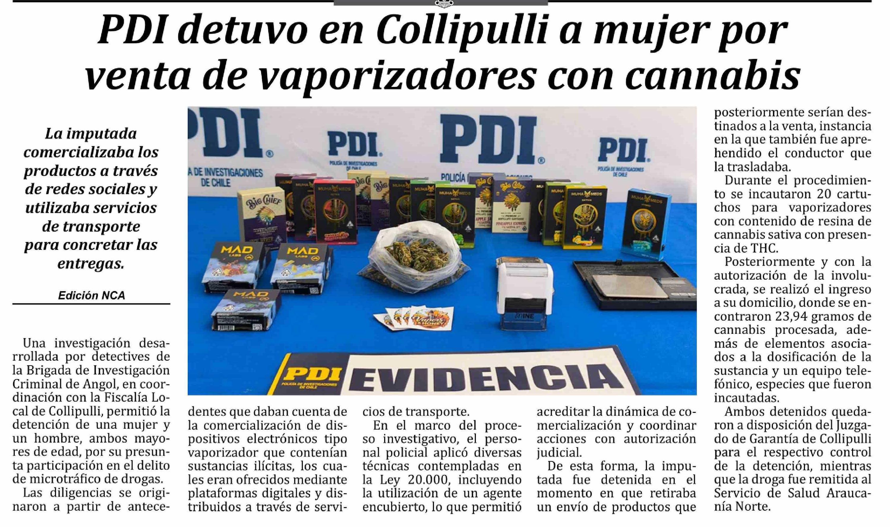 Título: PDI detuvo en Collipulli a mujer por venta de vaporizadores con cannabis