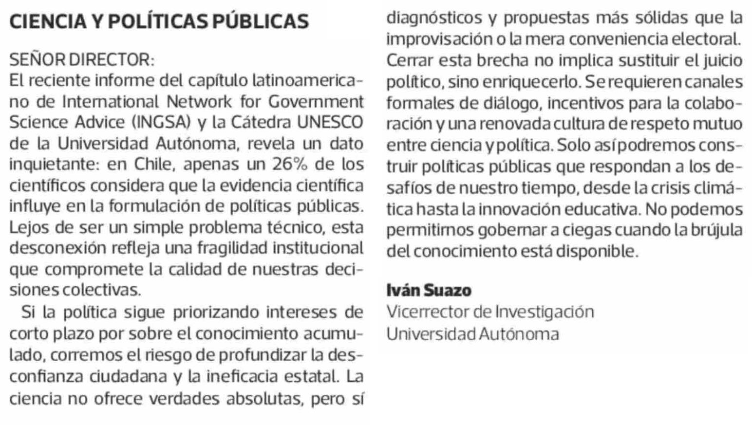 CARTAS: CIENCIA Y POLÍTICAS PÚBLICAS