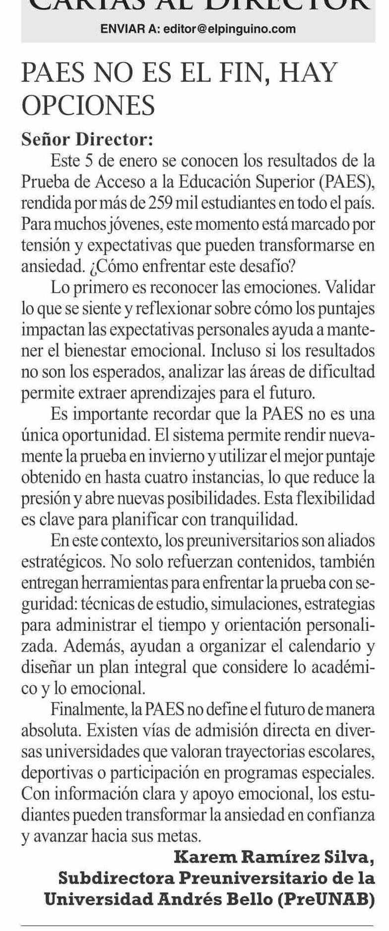 Cartas: PAES NOES EL FIN, HAY OPCIONES
