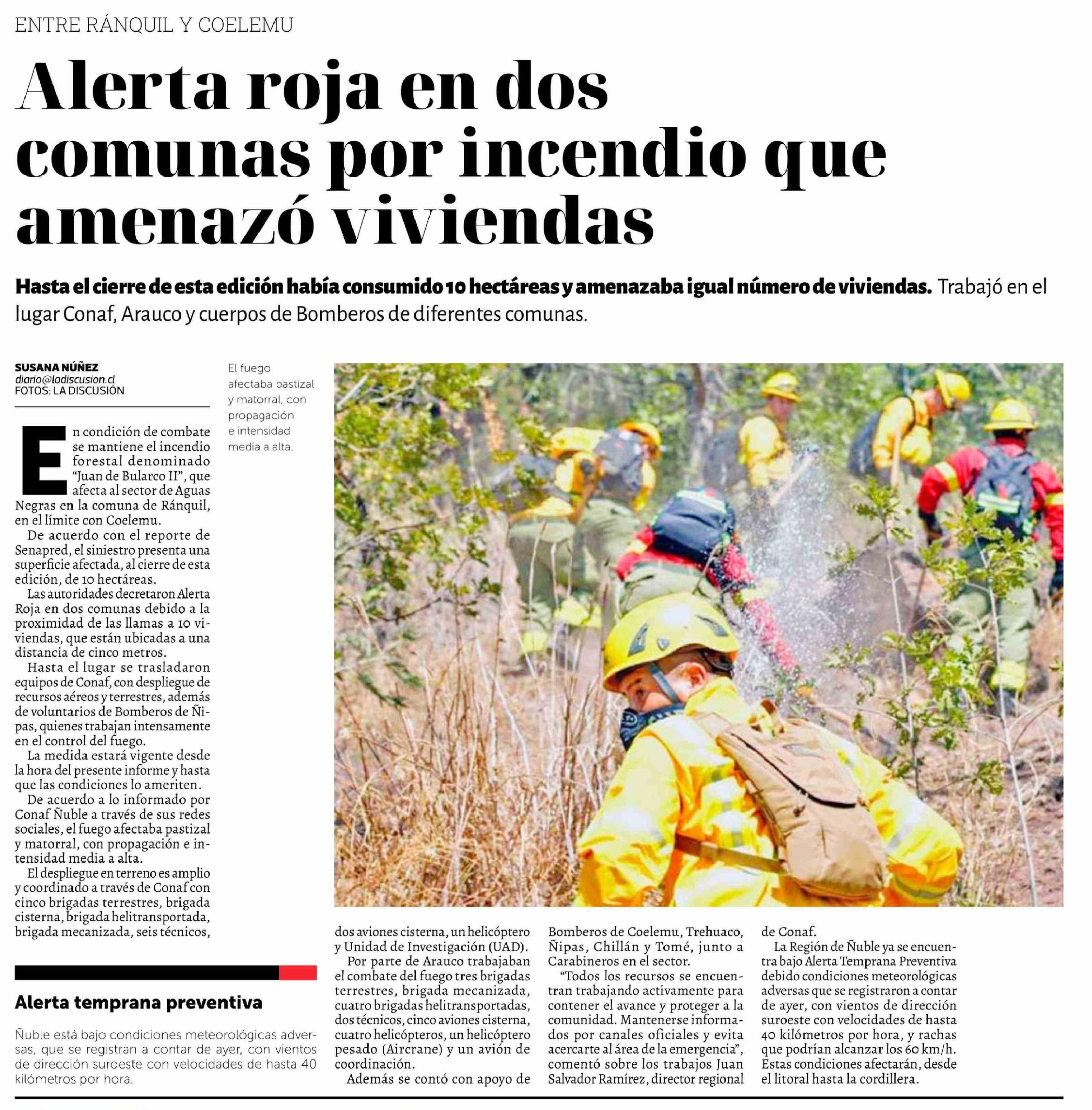 Alerta roja en dos comunas por incendio que amenazó viviendas