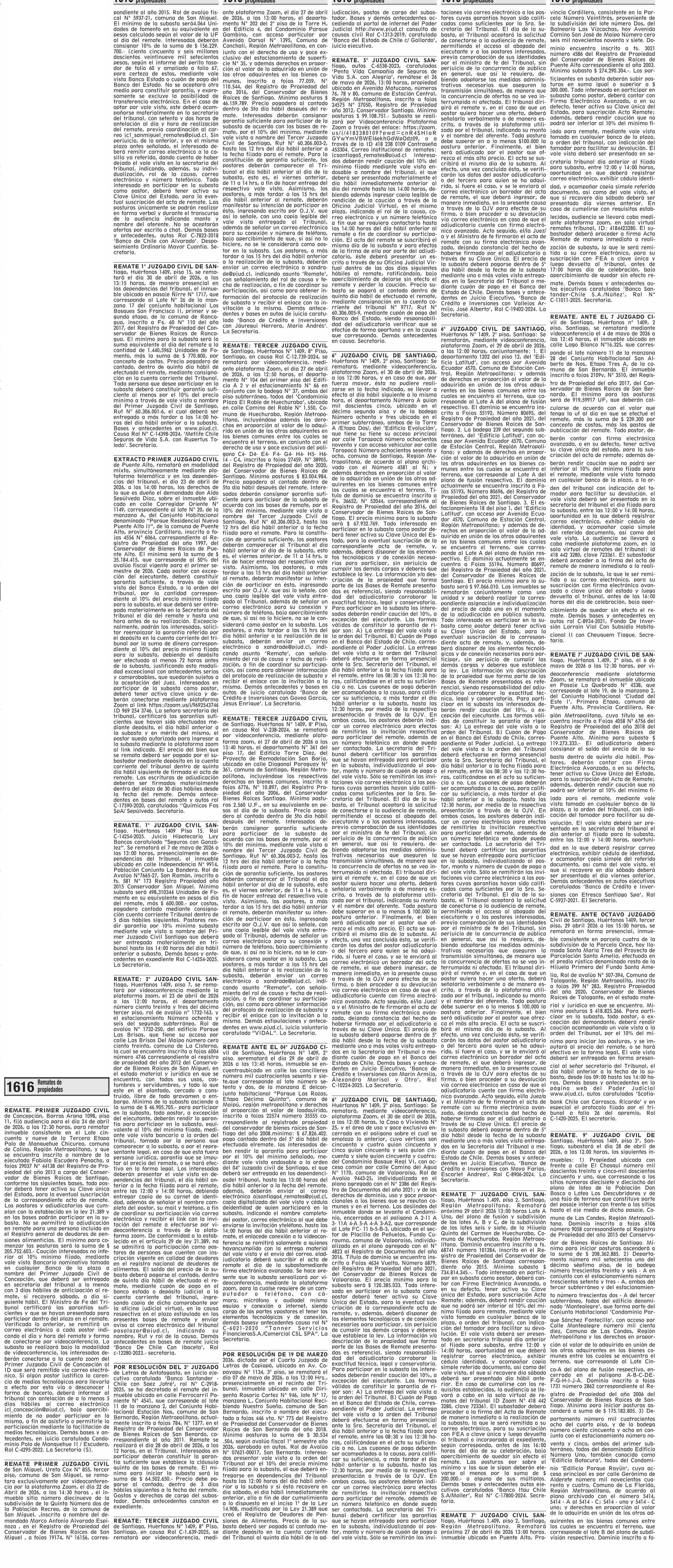 REMATES: 1616 Remates de propiedades