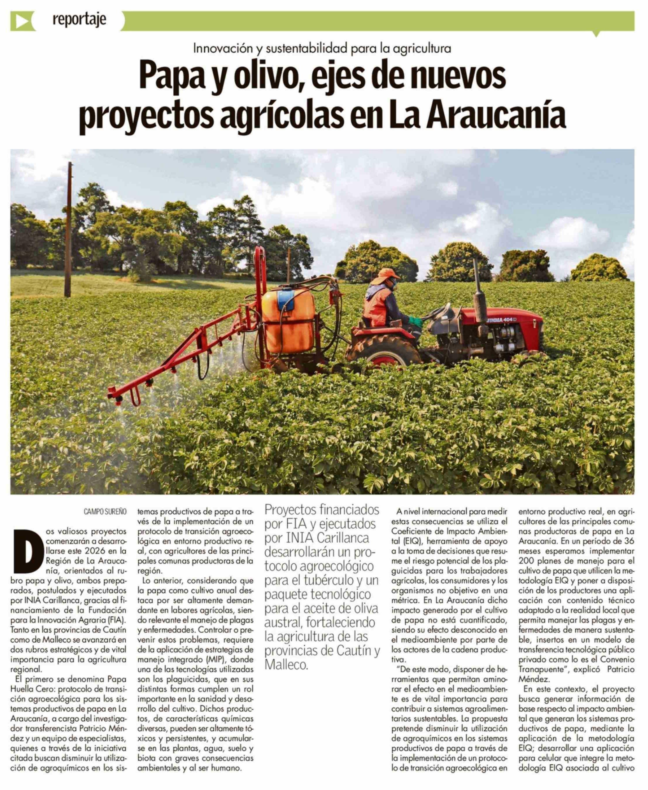 Papa y olivo, ejes de nuevos proyectos agrícolas en La Araucanía