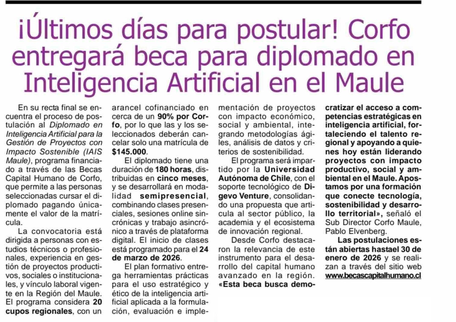 ¡Últimos días para postular! Corfo entregará beca para diplomado en Inteligencia Artificial en el Maule