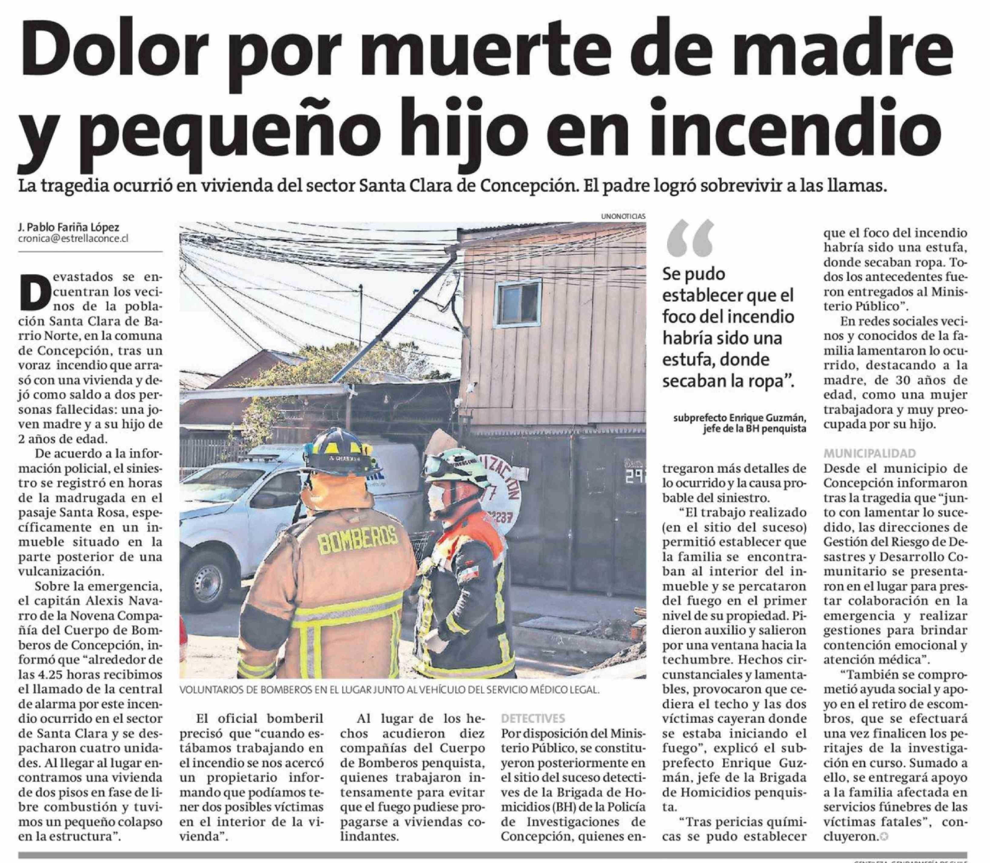 Dolor por muerte de madre y pequeño hijo en incendio