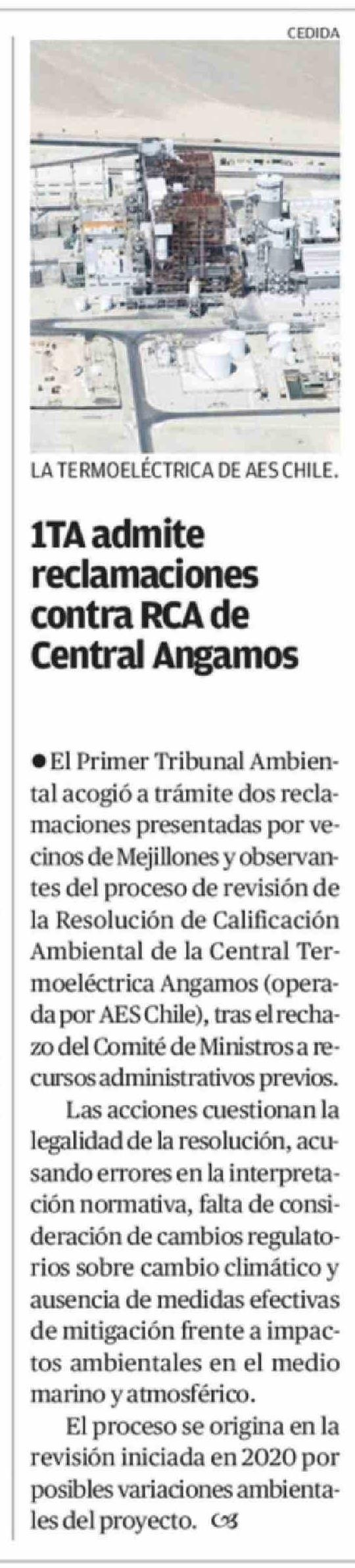 1TA admite reclamaciones contra RCA de Central Angamos