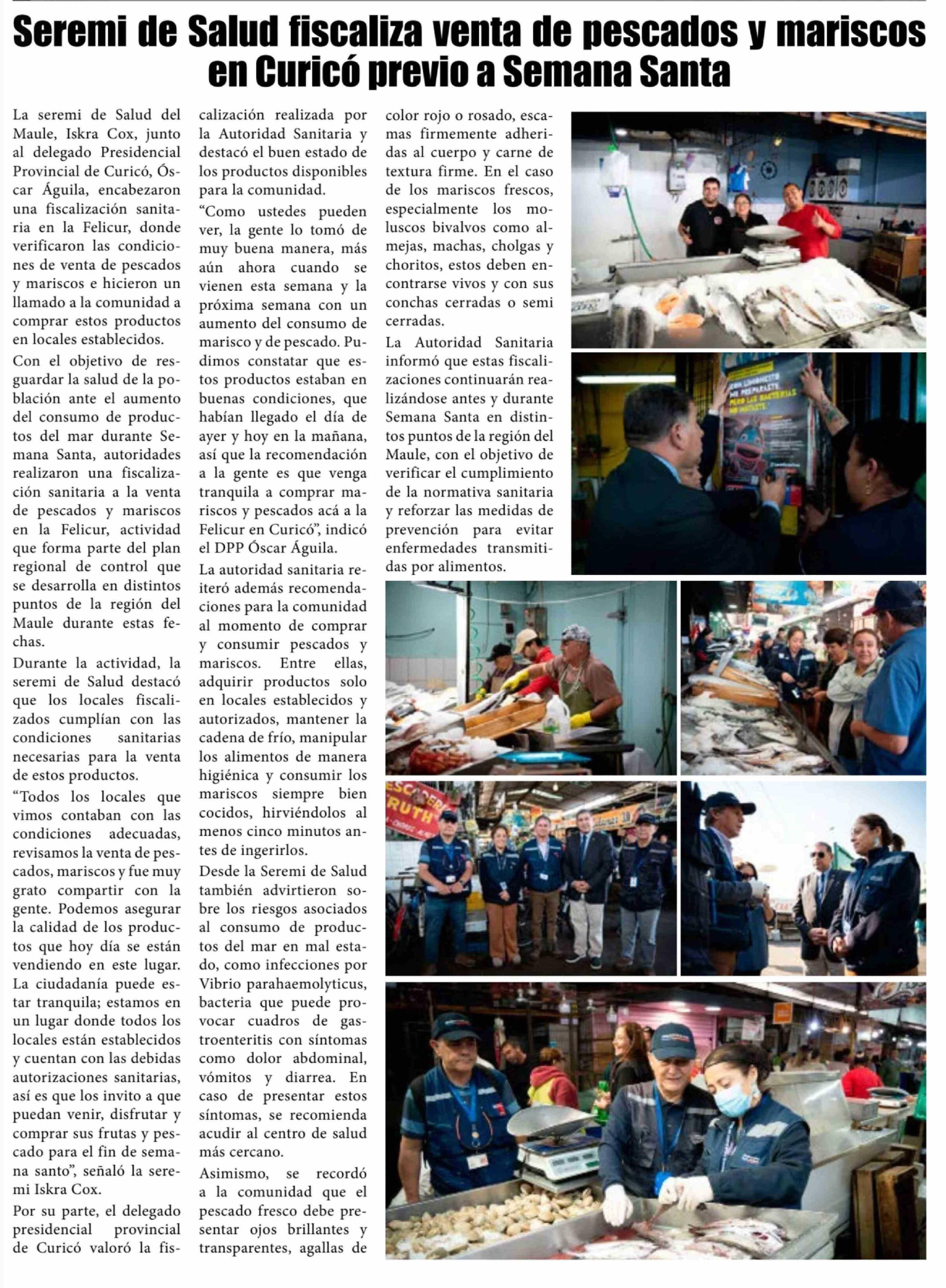 Título: Seremi de Salud fiscaliza venta de pescados y mariscos en Curicó previo a Semana Santa