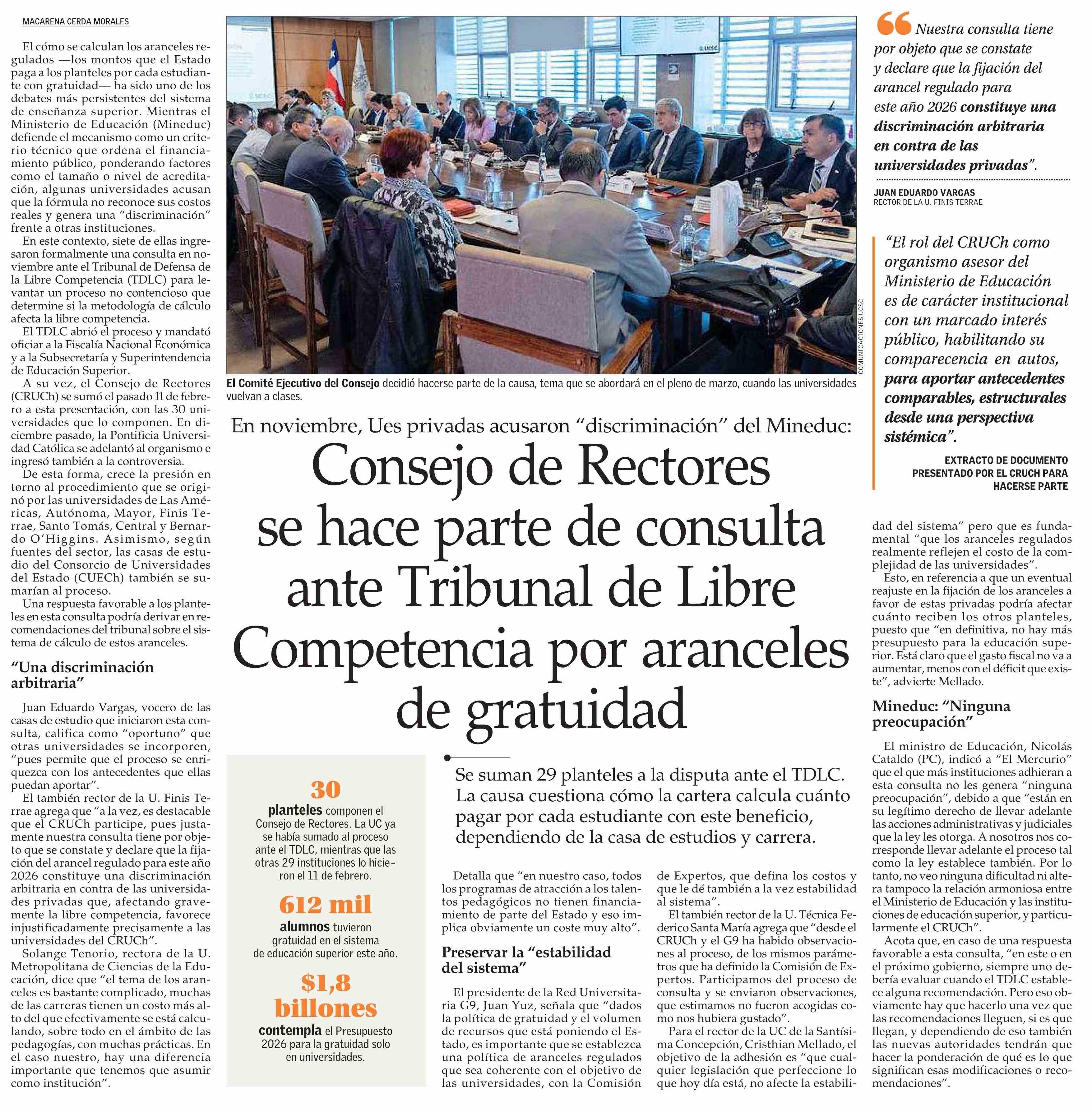 Consejo de Rectores se hace parte de consulta ante Tribunal de Libre Competencia por aranceles de gratuidad
