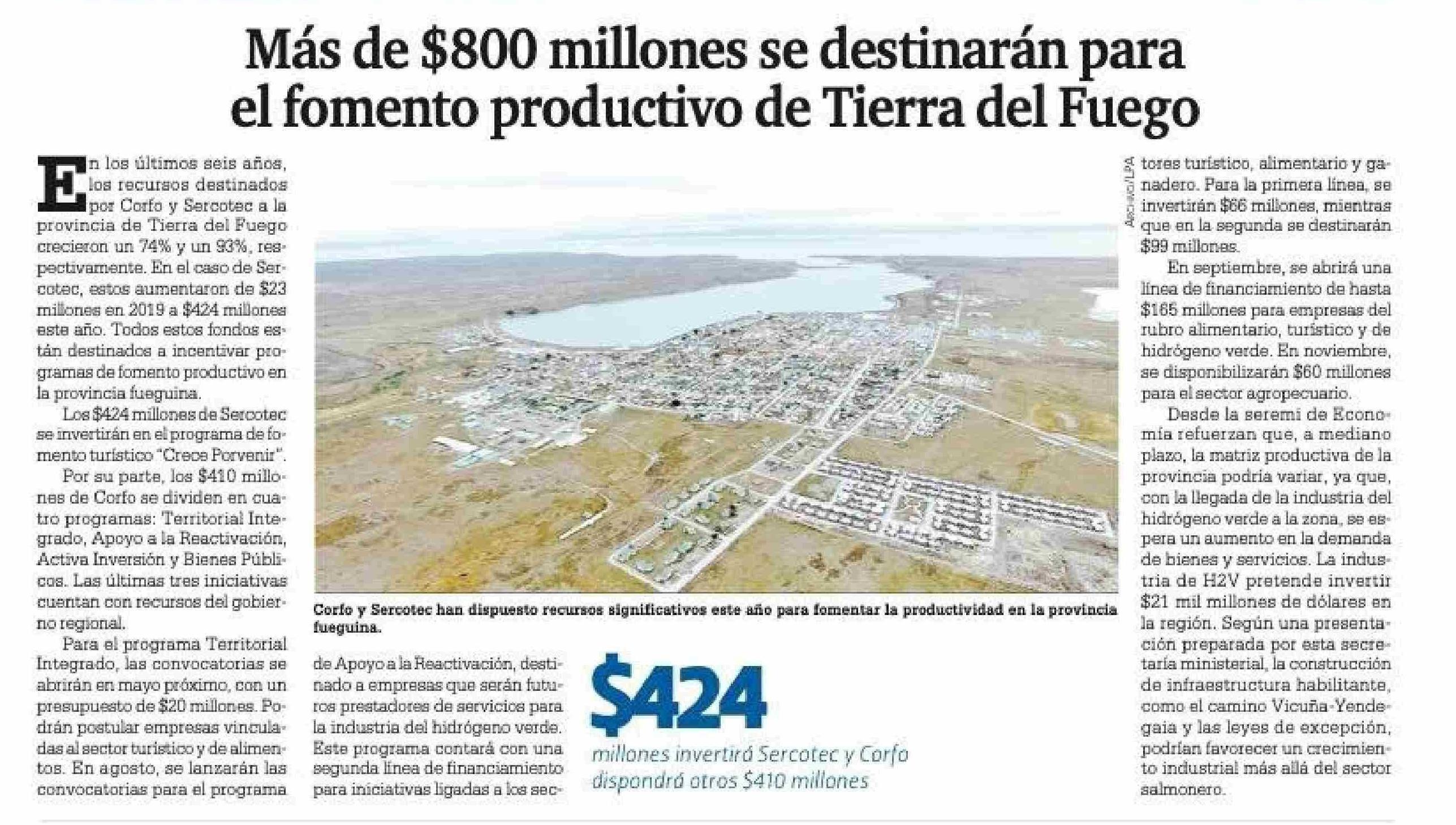 Más de $800 millones se destinarán para el fomento productivo de Tierra del Fuego
