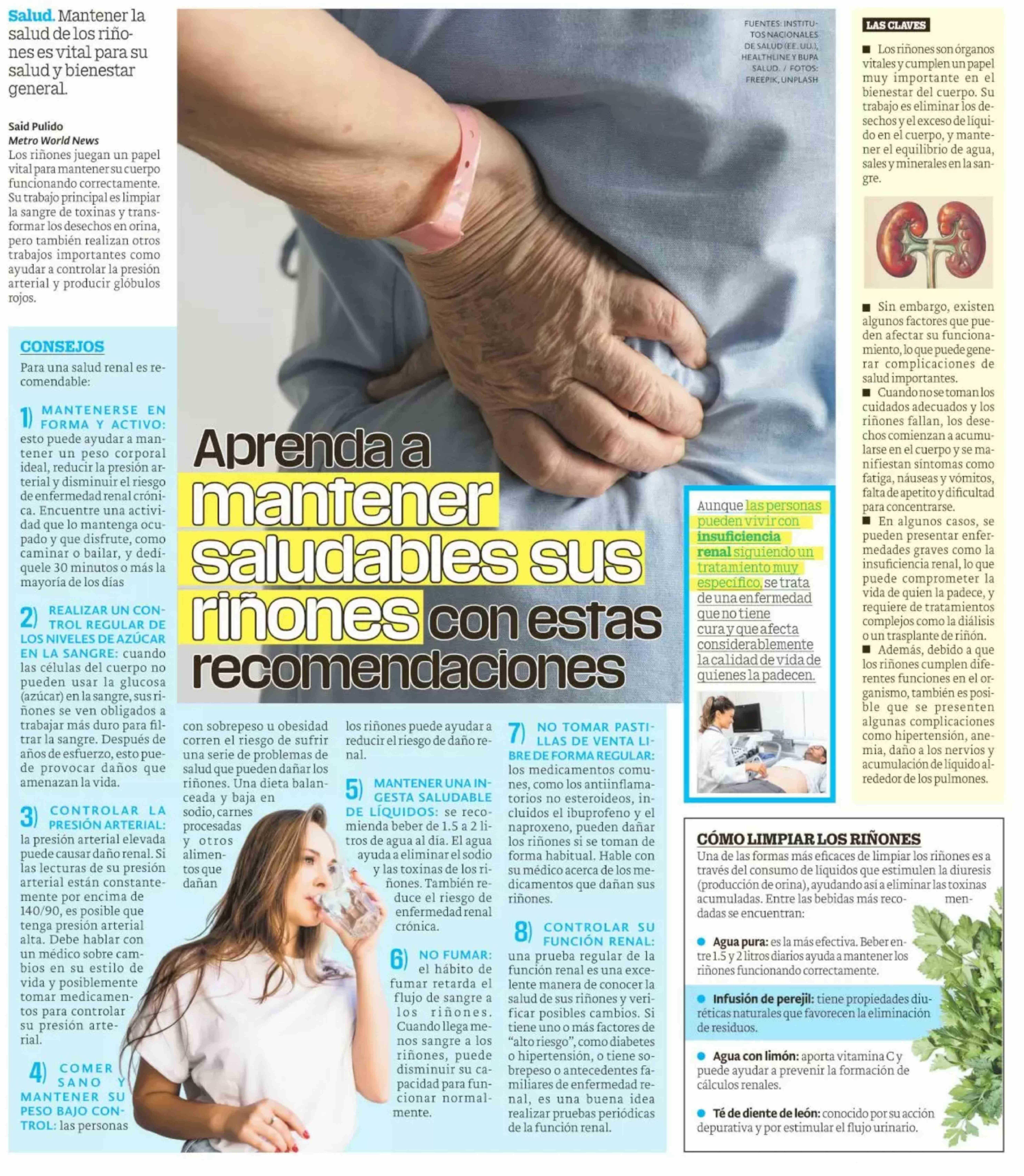 Aprenda a mantener saludables sus riñones con estas recomendaciones