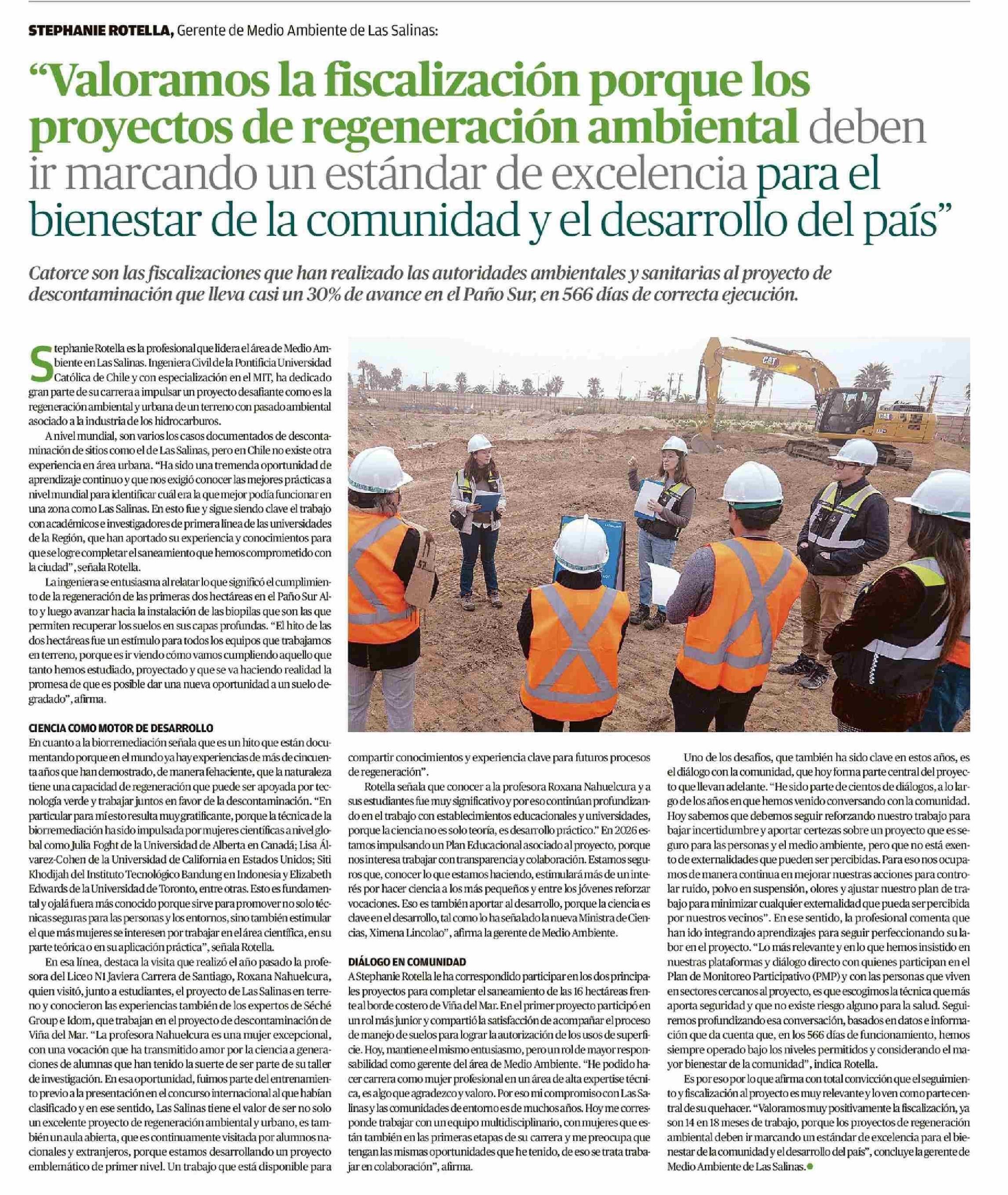 Título: “Valoramos la fiscalización porque los proyectos de regeneración ambiental deben ir marcando un estándar de excelencia para el bienestar de la comunidad y el desarrollo del país”