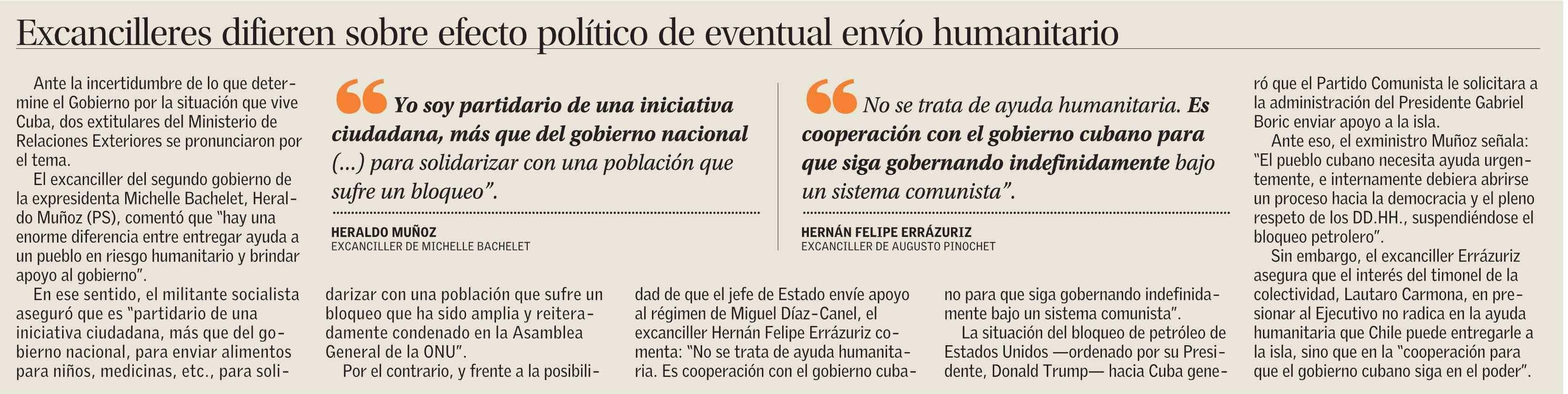 Excancilleres difieren sobre efecto político de eventual envío humanitario