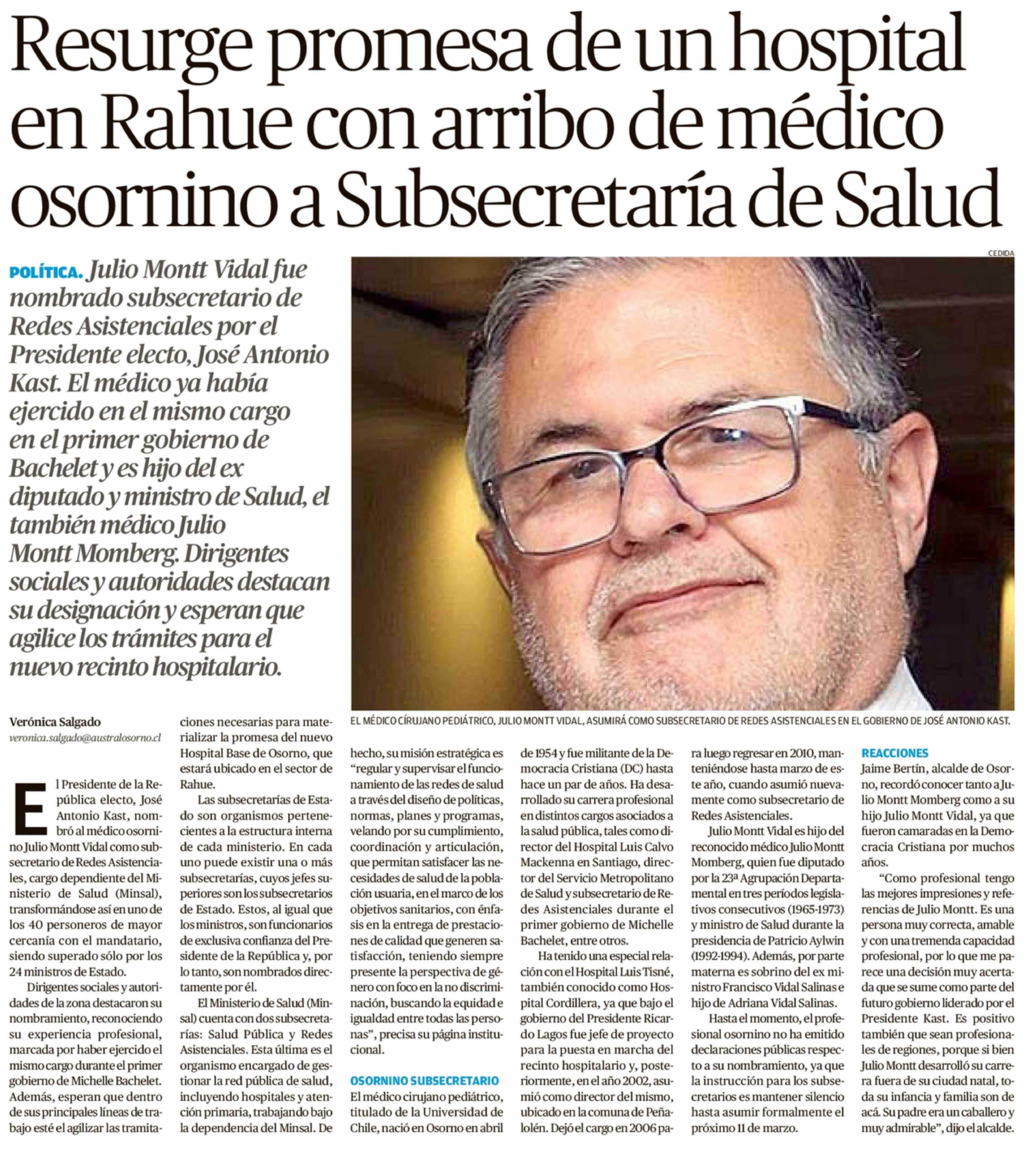 Título: Resurge promesa de un hospital en Rahue con arribo de médico osornino a Subsecretaría de Salud