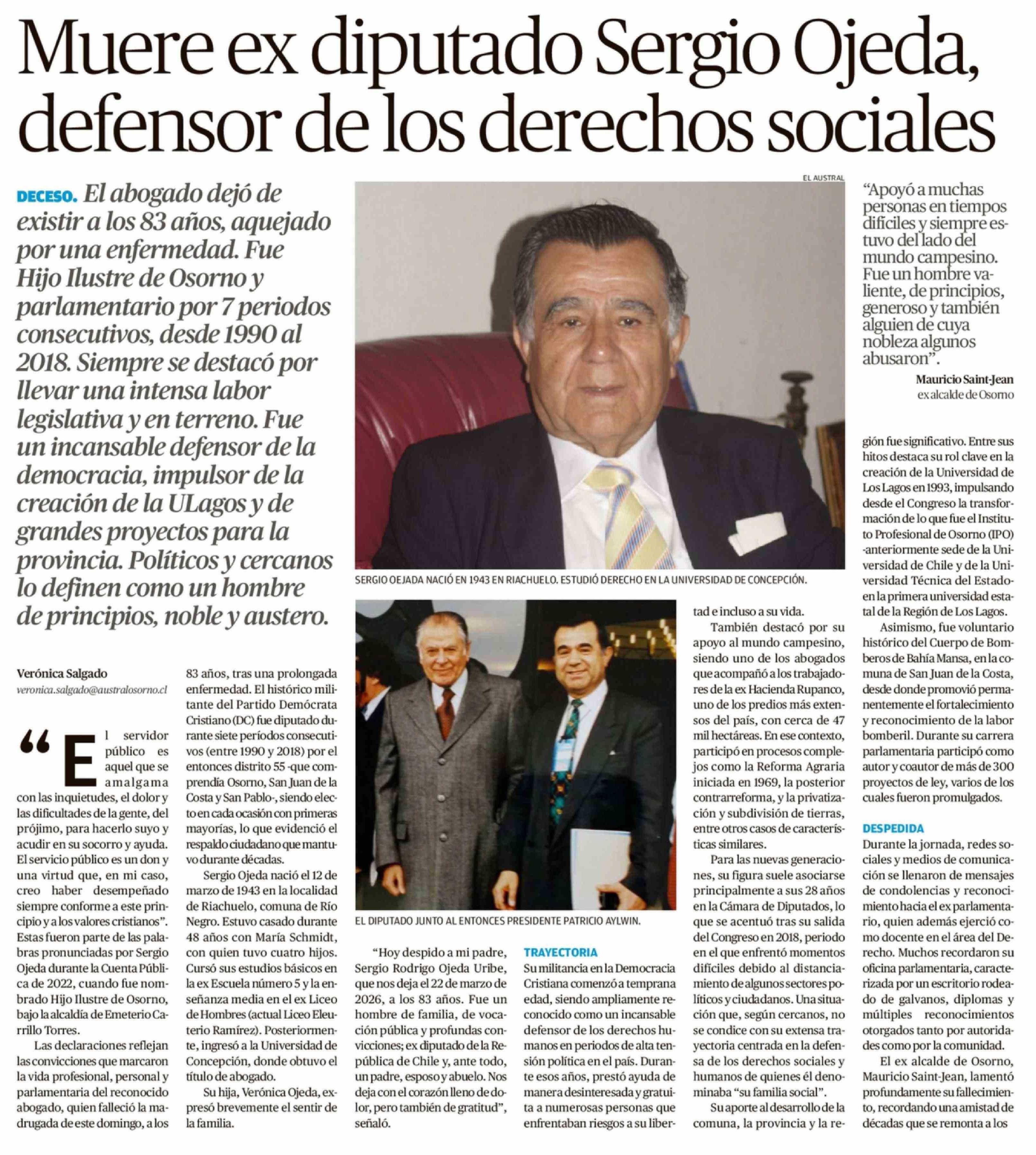 Muere ex diputado Sergio Ojeda, defensor de los derechos sociales