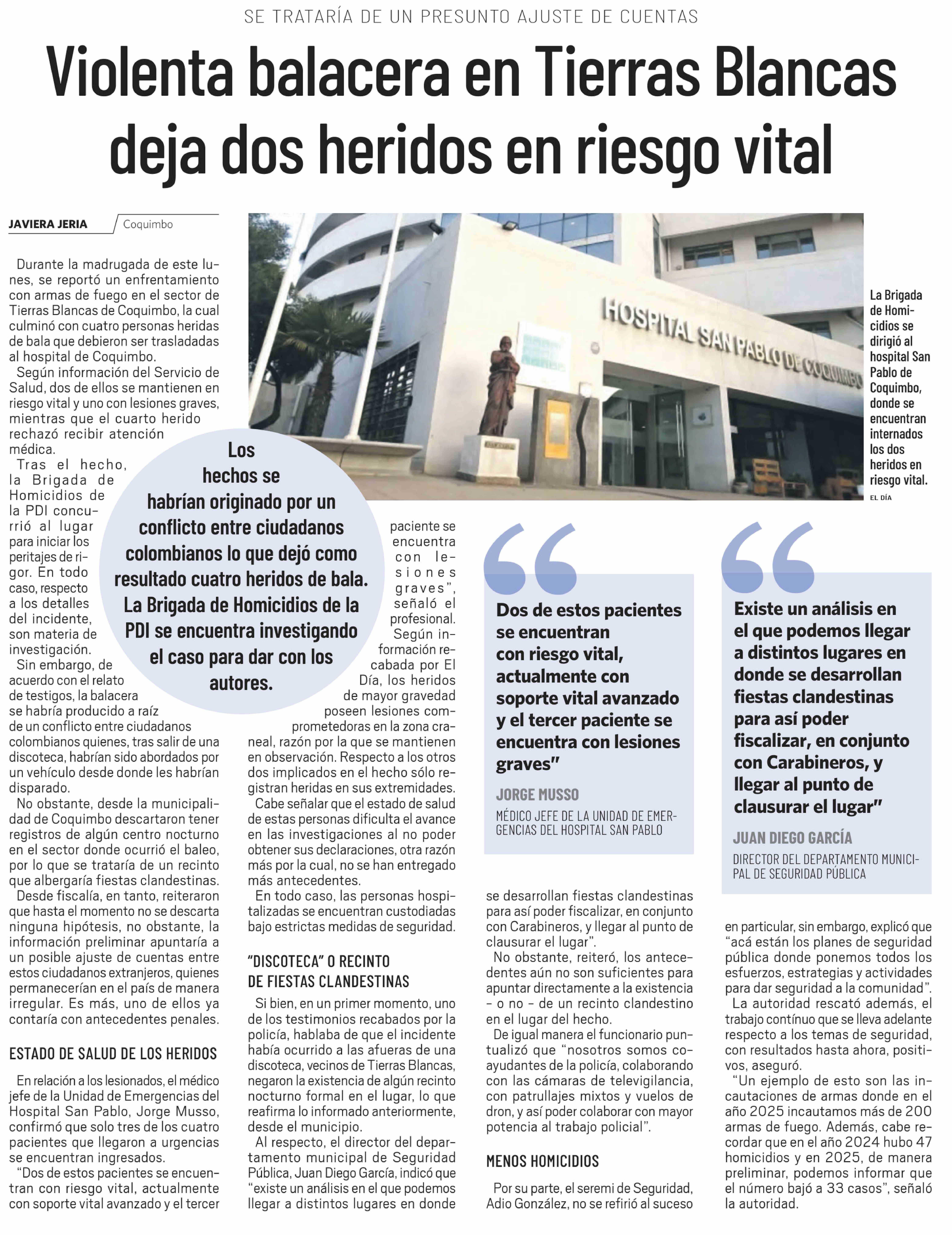 Violenta balacera en Tierras Blancas deja dos heridos en riesgo vital
